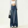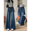 Jeans Azul Perna Larga Feminino Primavera Novo Cintura Alta Solto Caimento Slim Retrô Estilo Americano Calças Retas