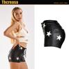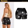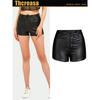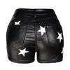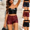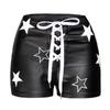 Calças Sexy de Veludo Preto e Couro PU Estilo Boate Europeu e Americano Calças Femininas de Couro Sintético Shorts de Corda com Furo de Metal Elástico