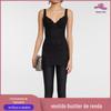 25054-25 Estilo Desejo Puro Slim Sexy Cor Sólida Sem Costas Renda Patchwork Halter Pescoço Alça Vestido Saia Curta
