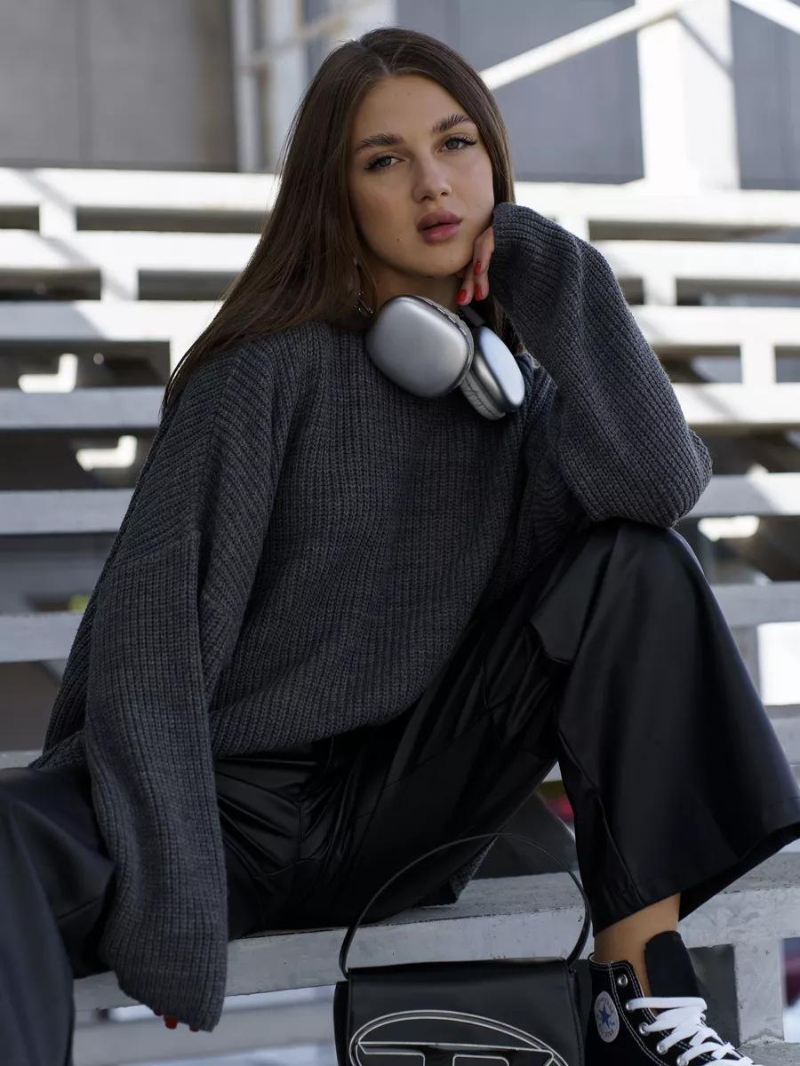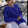 Suéter de gola redonda de cor sólida transfronteiriça 2024 europeu e americano Primavera e outono camisa de malha solta Ins Amazon Pullover Sweater para mulheres