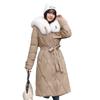 Casaco acolchoado de algodão para baixo para mulheres 2023 Inverno novo estilo ocidental moderno comprimento médio slim-fit cinto acima do joelho gola de pele grande casaco engrossado