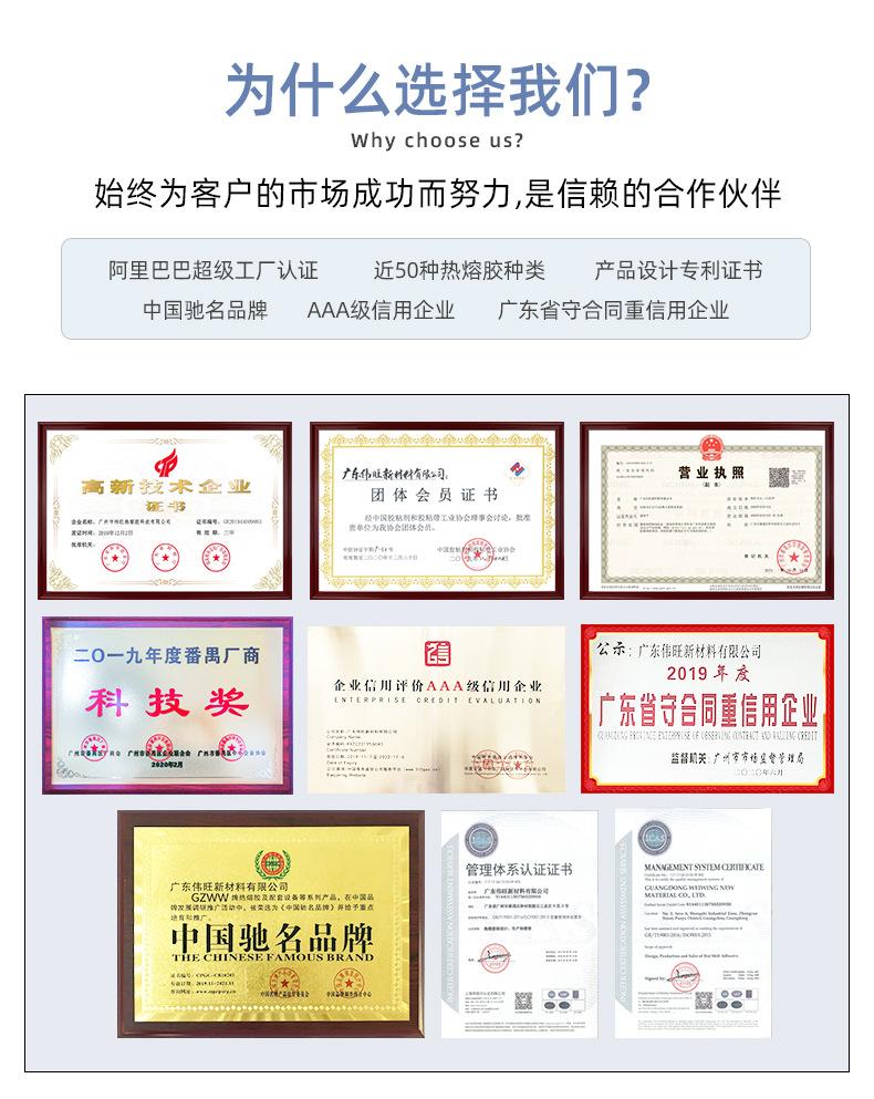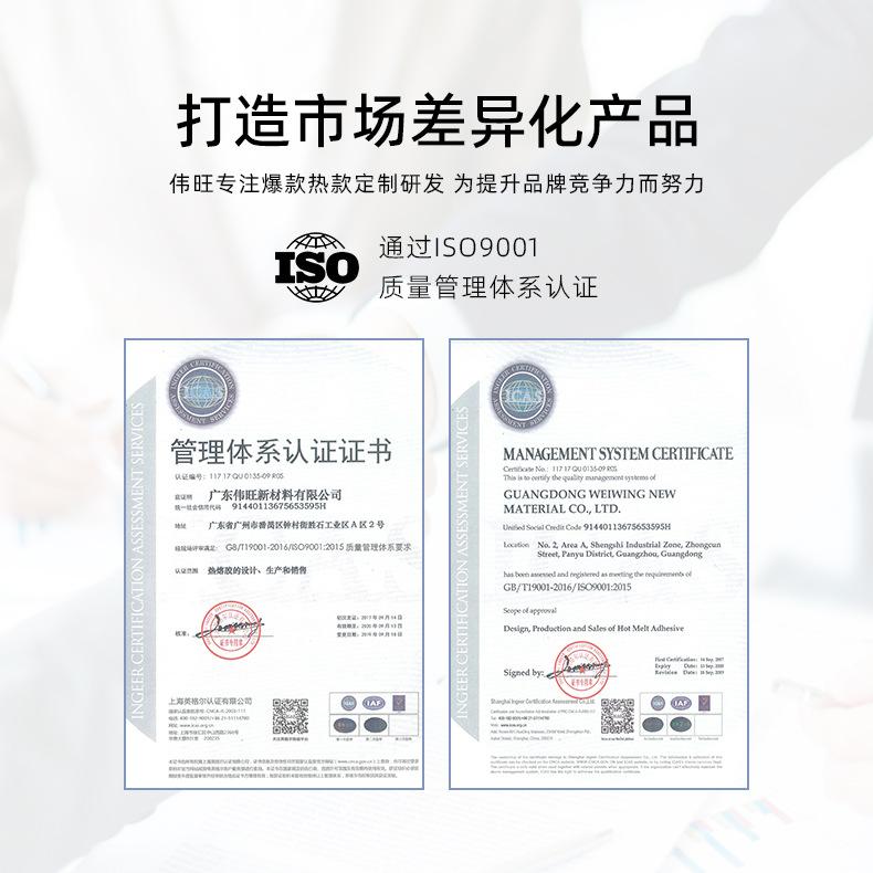O adesivo hot melt Weiwang possui padrões de testes rigorosos e é uma empresa certificada ISO9001 e ISO14001.