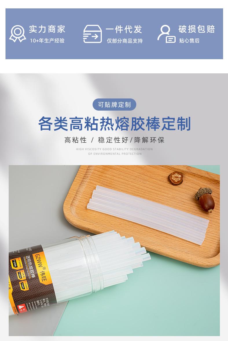 A quantidade mínima de pedido para os três tipos de bastões de cola de alta viscosidade, amarelo transparente, branco transparente e preto, é de 25 kg por caixa.