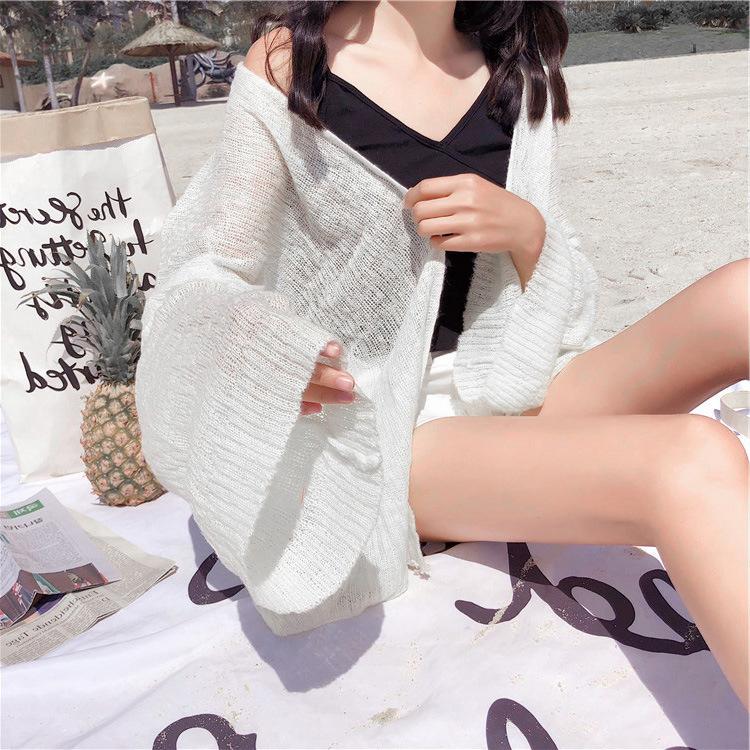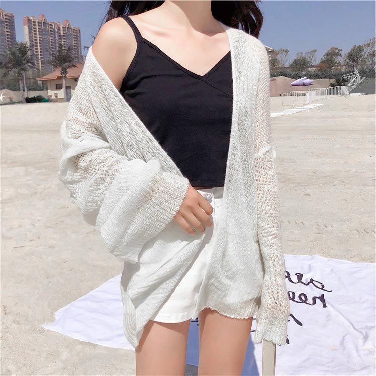 Suéter calado de manga larga suelto y delgado estilo chic transfronterizo para mujer de comercio exterior, camisa cárdigan versátil de verano para protección solar