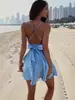 Amazon Europeu e Americano 2025 Europeu e Americano Transfronteiriço Verão Novo Estilo Vestido Sexy de Alcinhas com Laço Justo