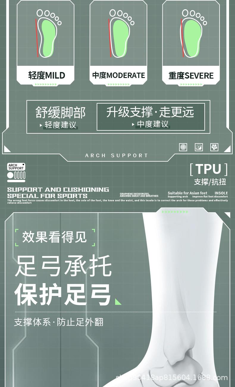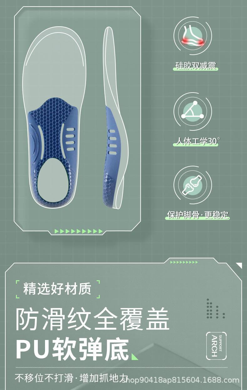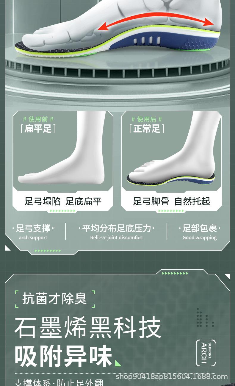 Palmilha ortopédica com suporte de arco grafeno desodorante absorvente de suor respirável esportiva absorção de choque masculina e feminina sola macia confortável