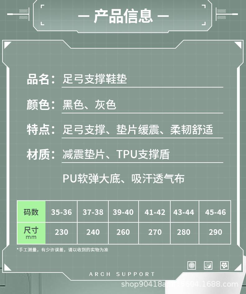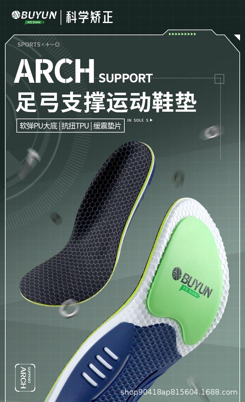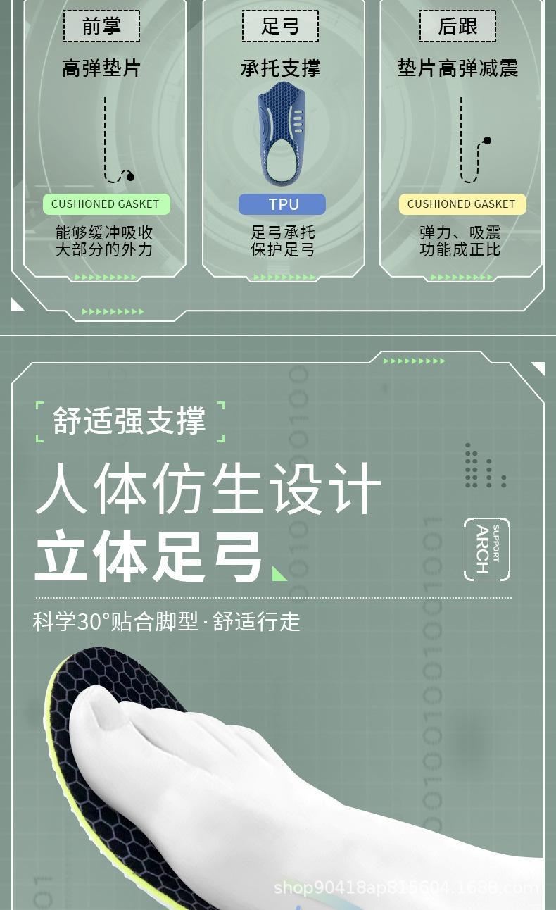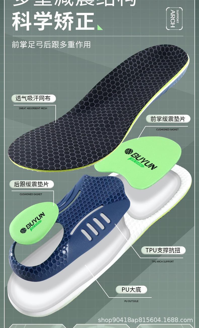 Palmilha ortopédica com suporte de arco grafeno desodorante absorvente de suor respirável esportiva absorção de choque masculina e feminina sola macia confortável