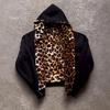 Moletom com Capuz Novo Europeu e Americano Outono e Inverno Novo Moletom com Capuz Estampa de Leopardo Retrô Moletom com Zíper Solto Top Personalizado Ins