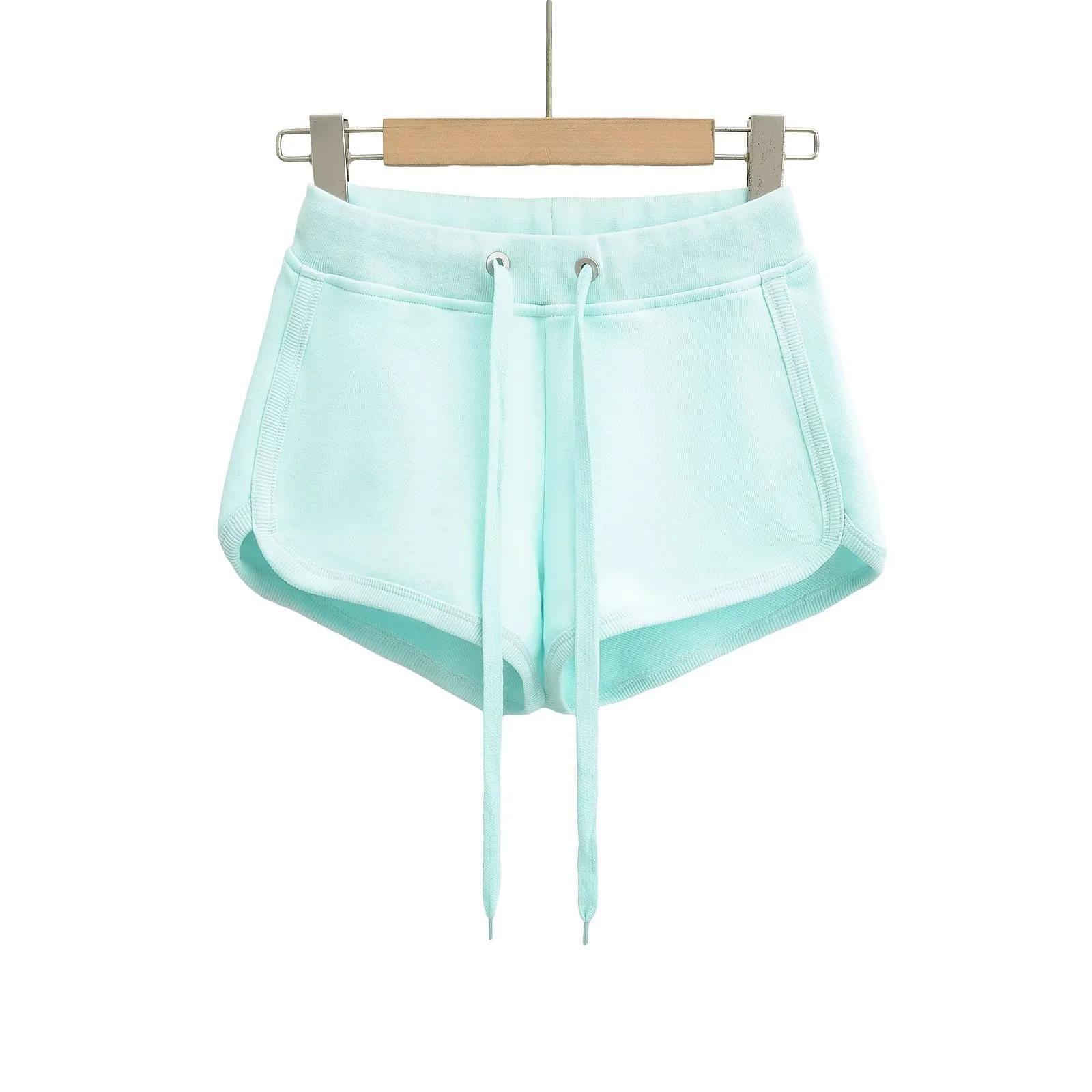 Moda Verão 2025 Versátil Cintura Baixa Sexy Hot Pants Feminino Comércio Exterior Americano Casual Esportivo Shorts com Cordão