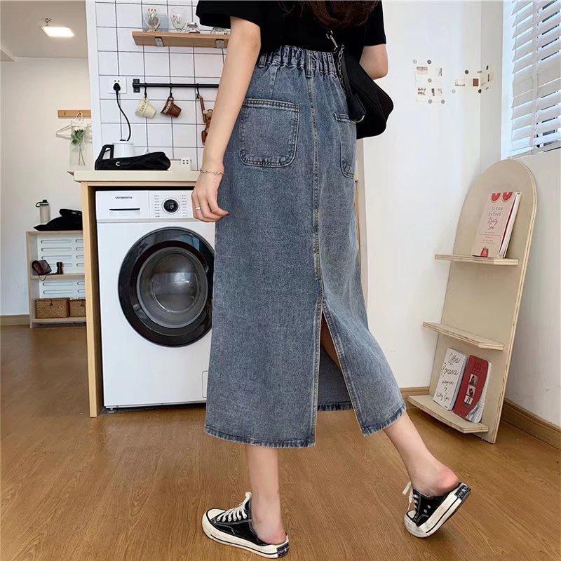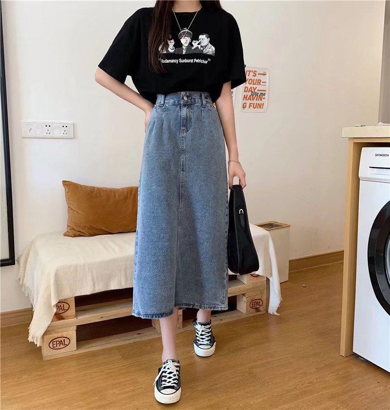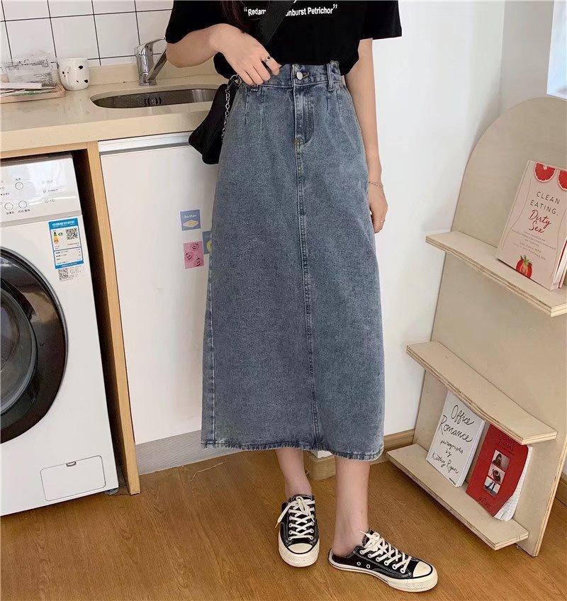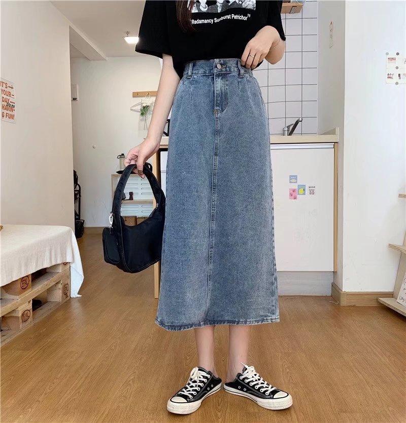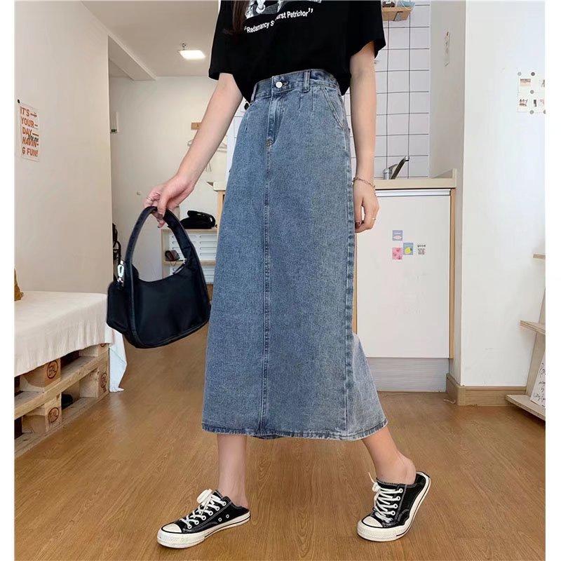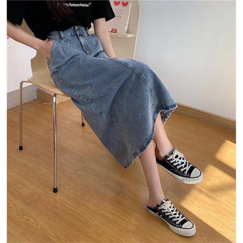 Saia Jeans Midi Verão 2023 Nova Moda Emagrecimento Cintura Alta Fenda Saia Quadril Saia A-line Ins