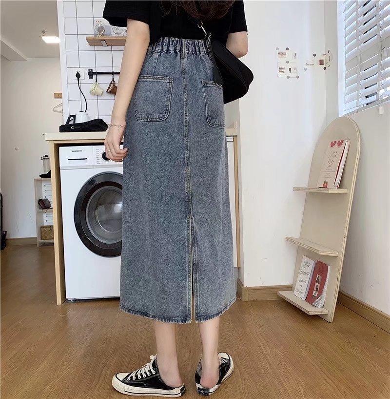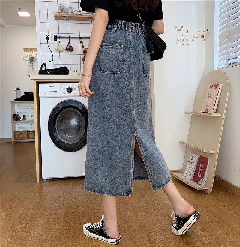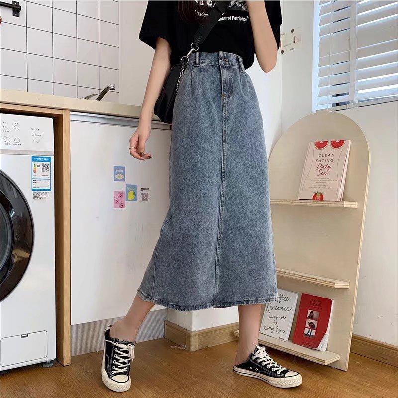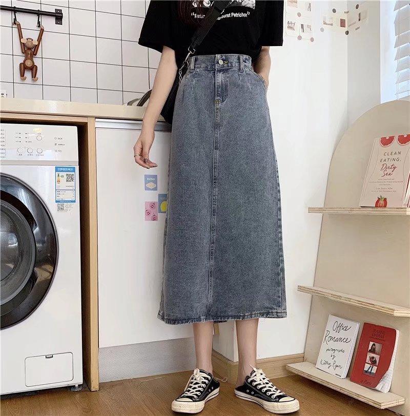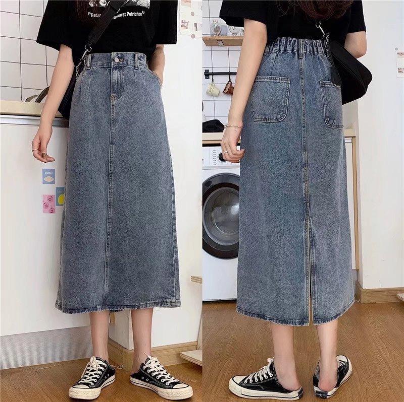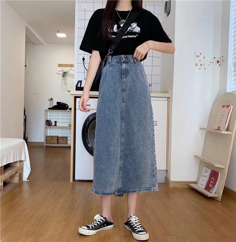 Saia Jeans Midi Verão 2023 Nova Moda Emagrecimento Cintura Alta Fenda Saia Quadril Saia A-line Ins