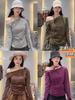 Top de Tricô Sexy Ombro a Ombro Manga Longa para Mulheres Verão 2025 Novo Visual Versátil Emagrecedor Camiseta Cor Pura