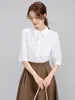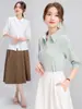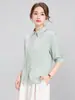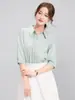 Camisa Verde de Manga Sete Pontos Nova Primavera Verão Outono Camisa Feminina Simples Moda Elegante Casual Combina com Tudo