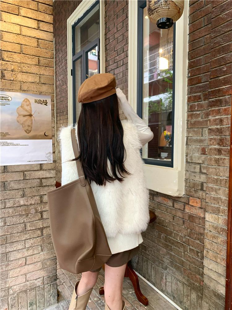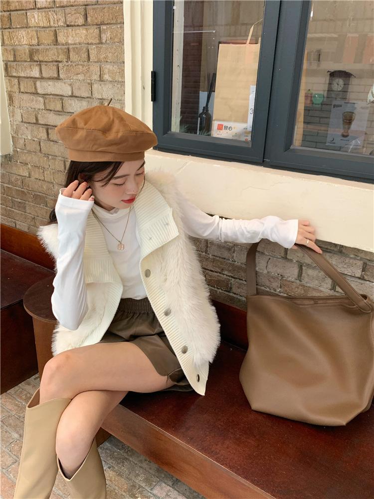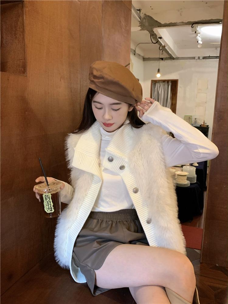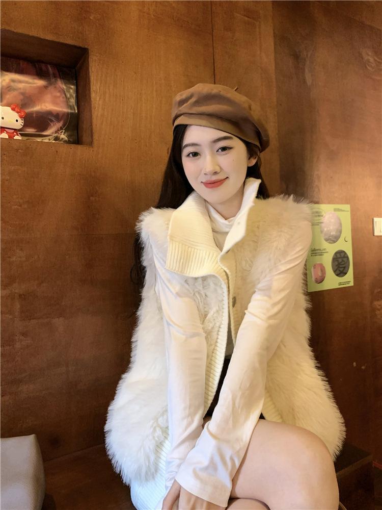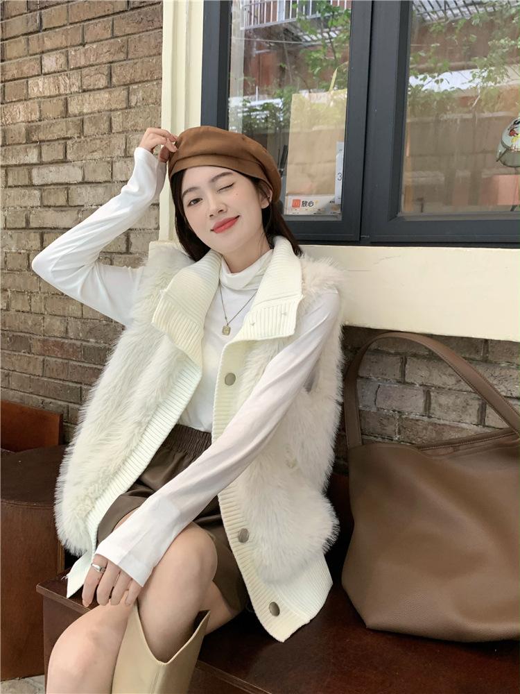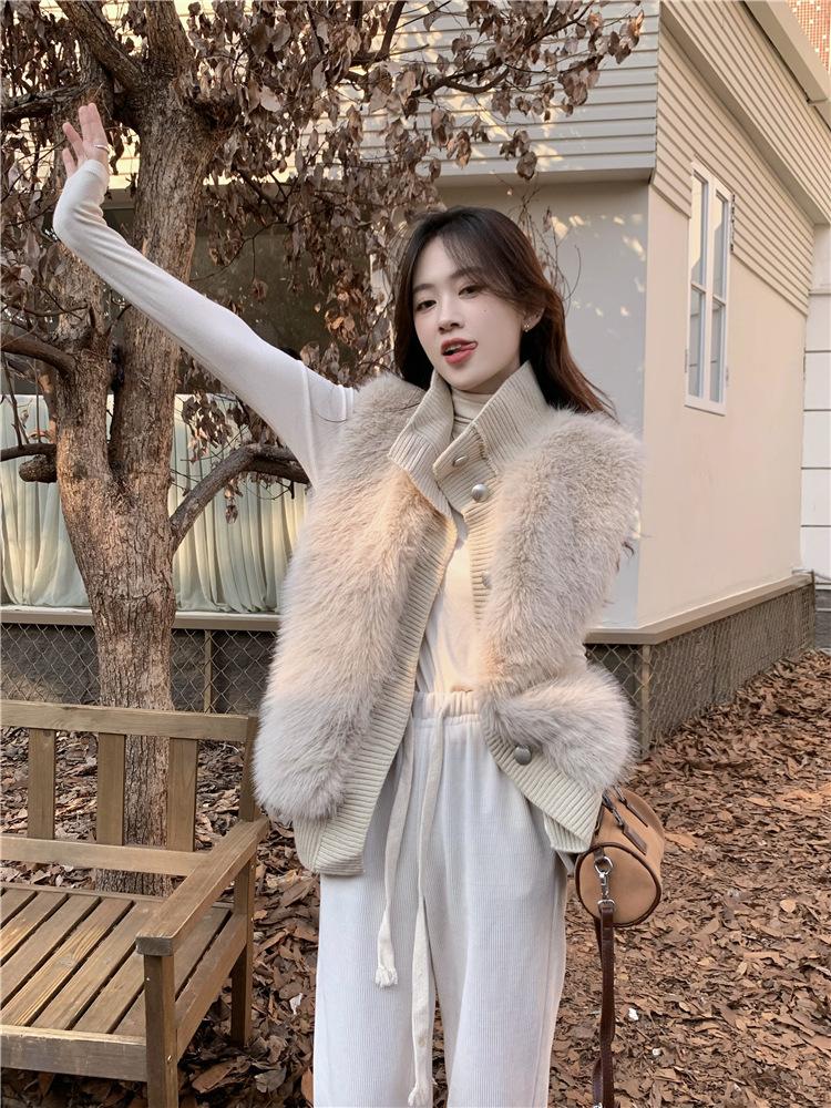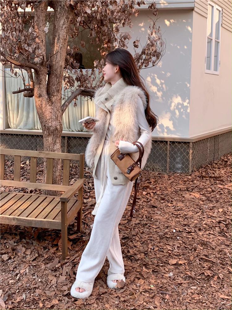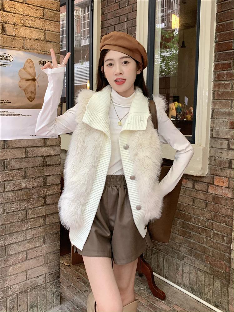 Suéter Sem Mangas com Gola de Pele de Vison Casaco Feminino 2023 Outono e Inverno Novo Estilo Coreano Solto Elegante Cardigã Tricotado