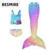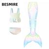 Sereia Verão Novo Fato de Banho Infantil Fato de Banho Colorido Cauda de Peixe Três Peças Biquíni Infantil para Meninas