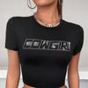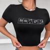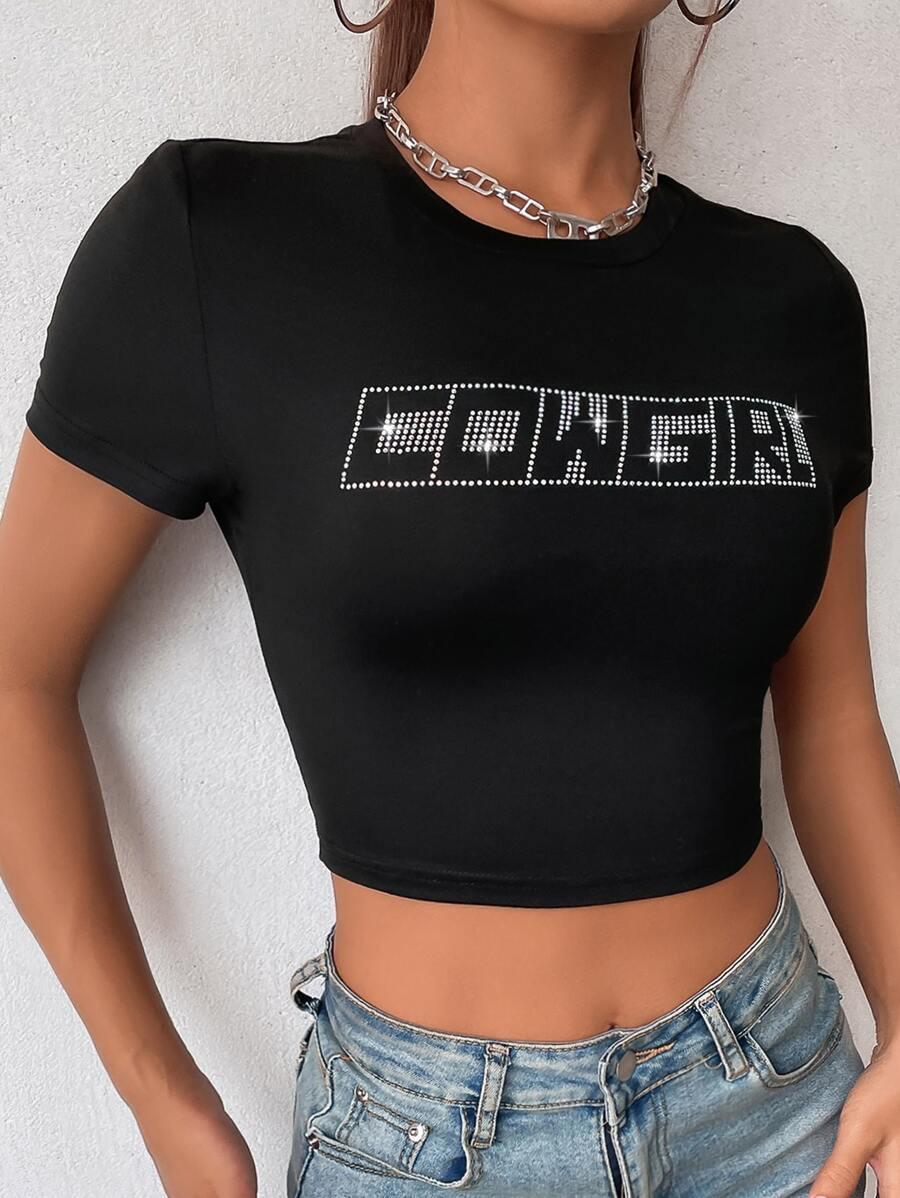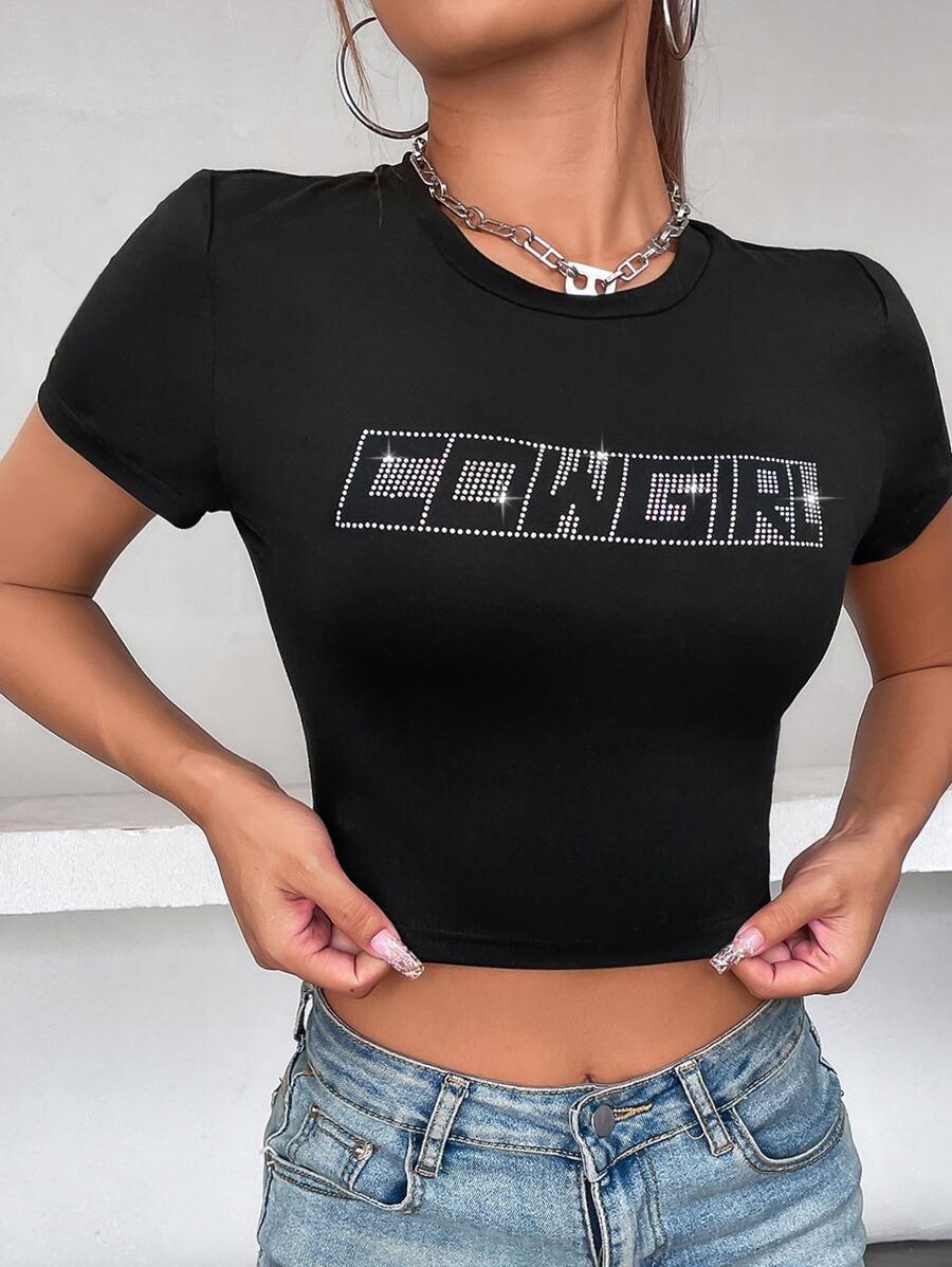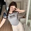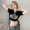 Estilo Europeu e Americano Moda de Rua Sexy Gola Redonda Estampada Camiseta de Manga Curta Design Feminino Verão Top Curto
