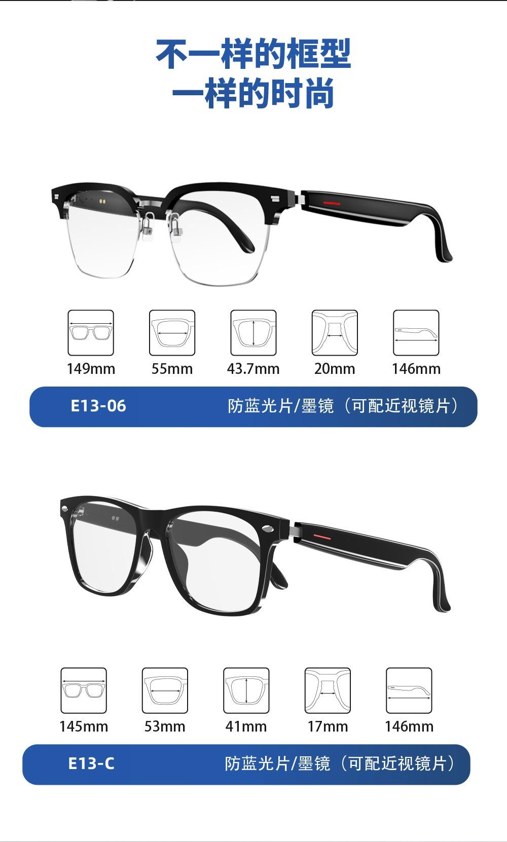 E13 Smart Glasses Music Headset Songs Talk Sunglasses pode ser equipado com óculos de sol de visão curta Smart Bluetooth Glasses
