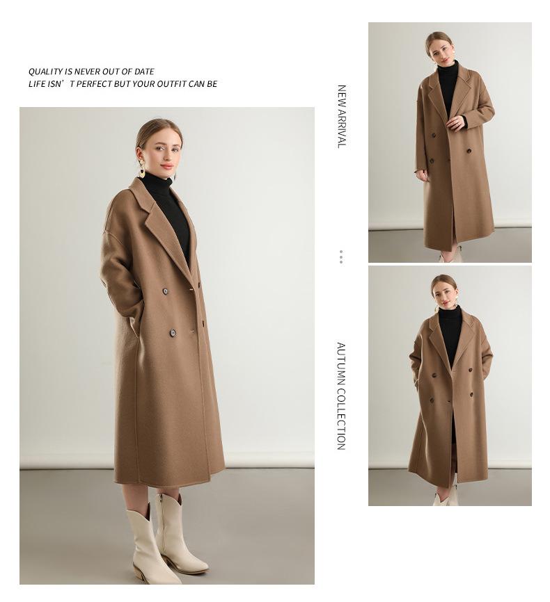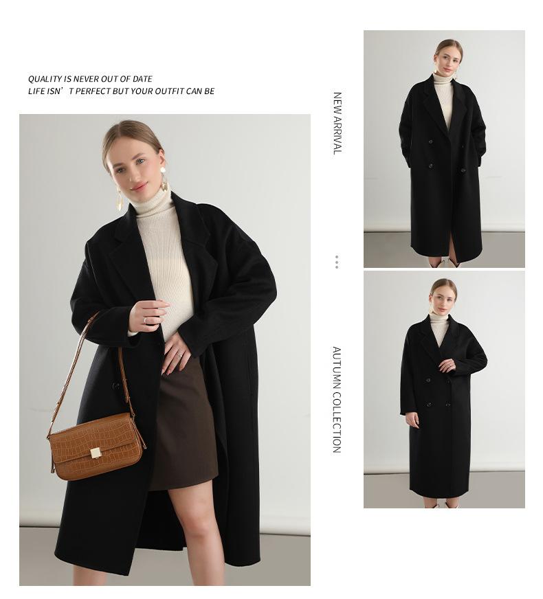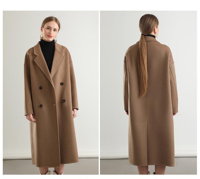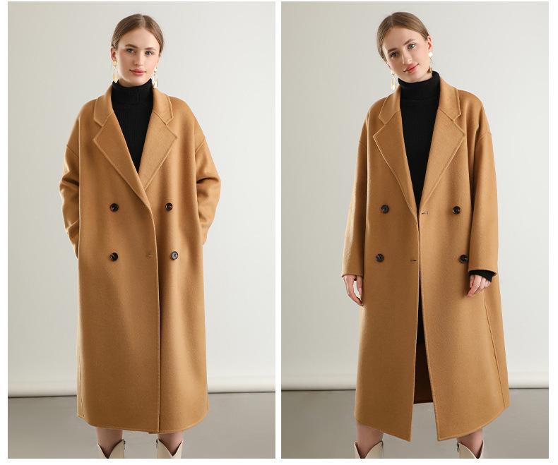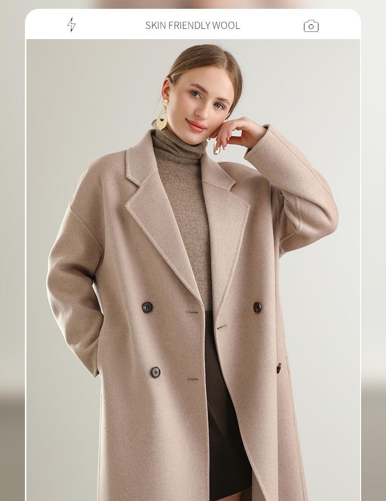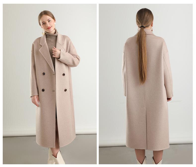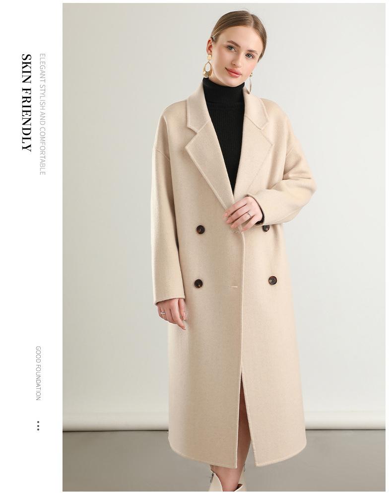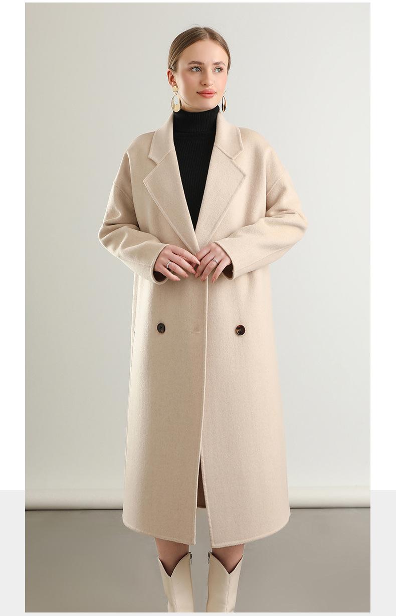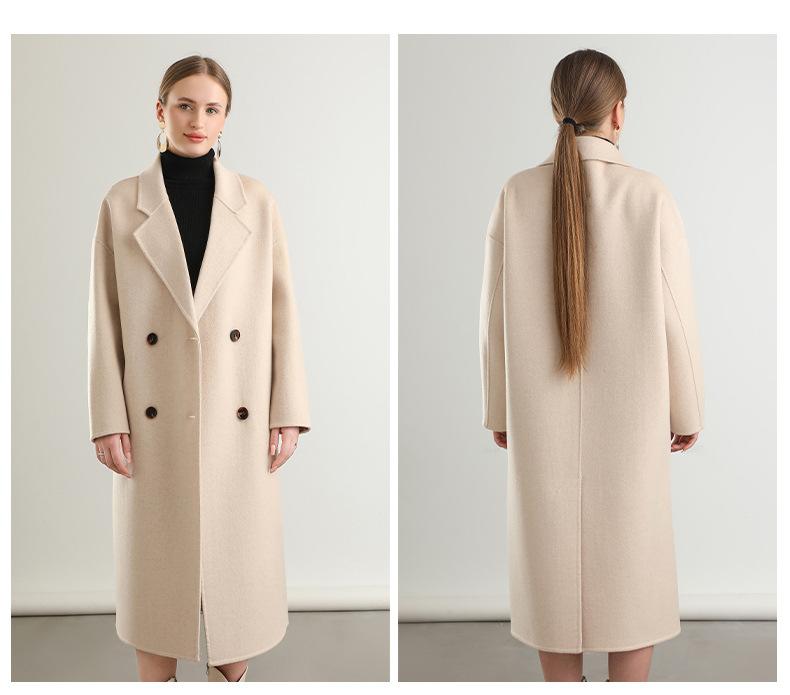 2024 Novo Casaco Outono Colarinho de Terno Lã Dupla Abotoadura para Mulheres Estilo Gentil Casaco de Lã Estendido Dupla Face