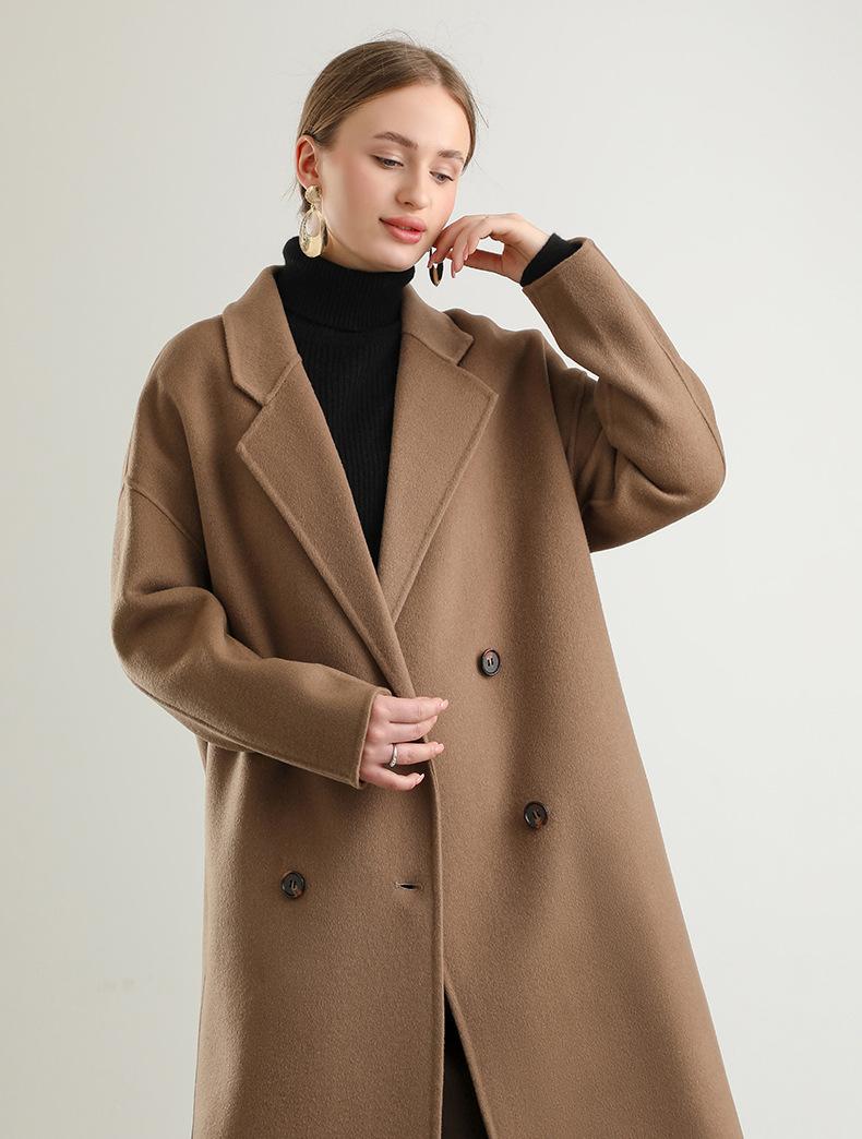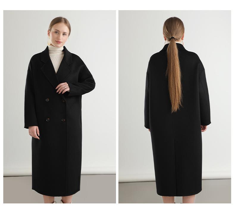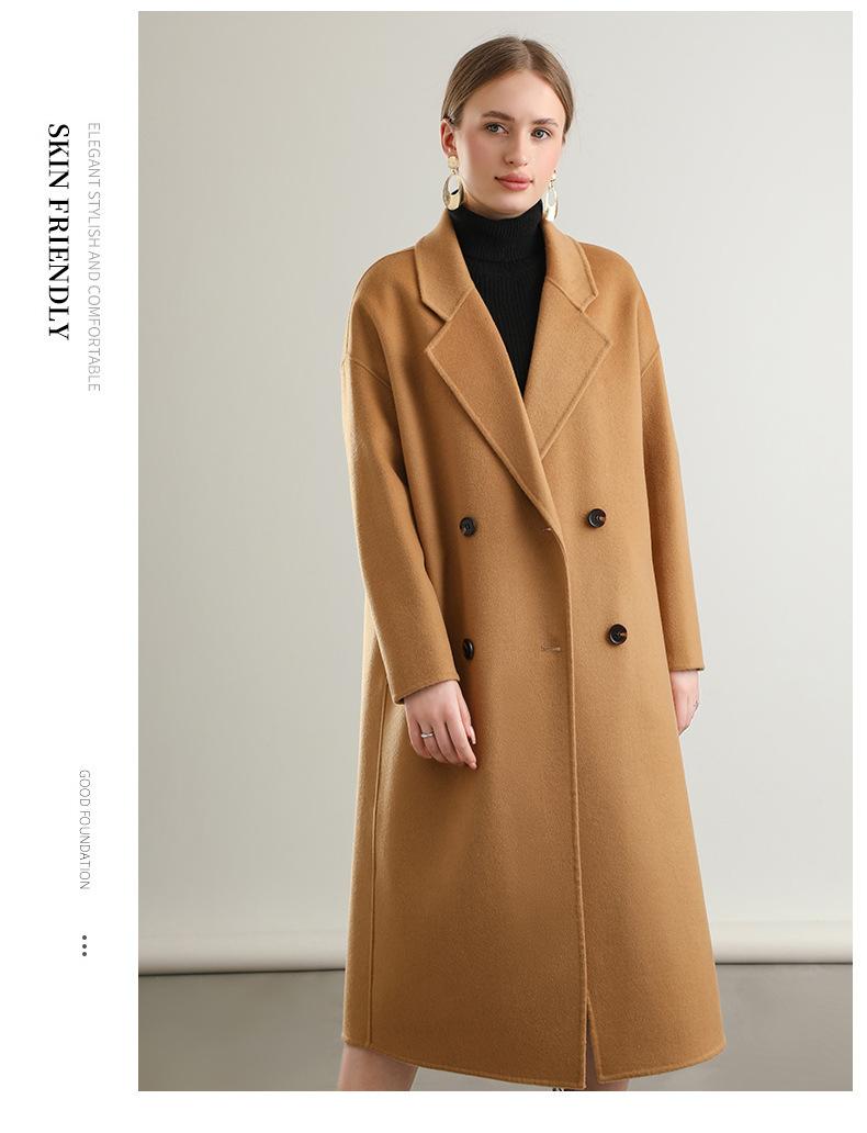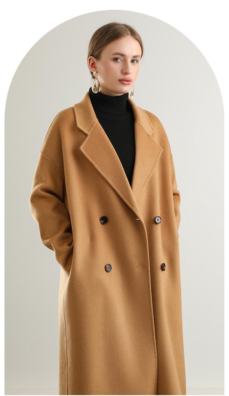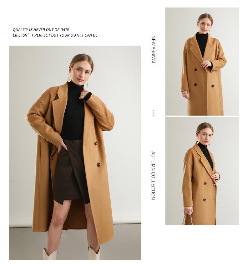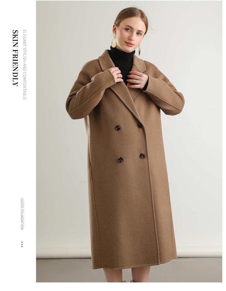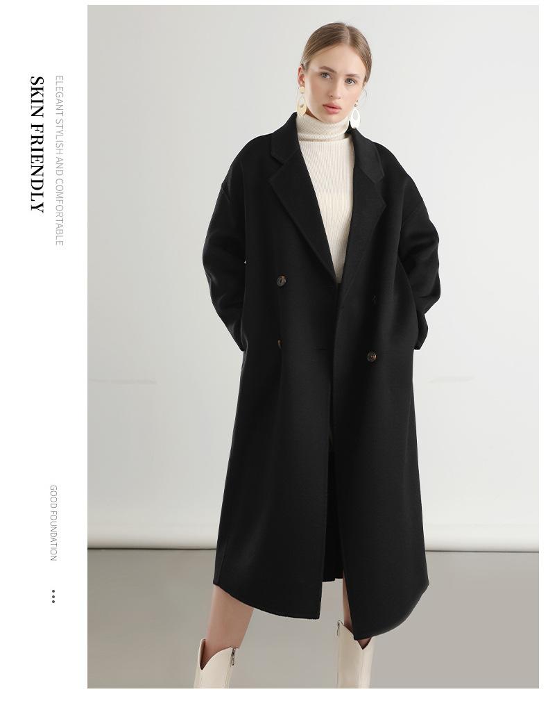 2024 Novo Casaco Outono Colarinho de Terno Lã Dupla Abotoadura para Mulheres Estilo Gentil Casaco de Lã Estendido Dupla Face