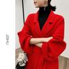 Casaco de Lã Dupla Face Feminino Comprimento Médio 2023 Outono e Inverno Ano Novo Casaco de Lã Vermelho High-end com Cadarço