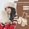 Luvas Quentes de Inverno 2025 para Mulheres, Conjunto Fofo de Cachecol de Pelúcia Estudantil de Inverno Forrado com Lã e Aquecedor de Pescoço Espessado de Pele de Coelho Imitada