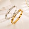 Pulseira de Aço Inoxidável Retrô Cravejada de Diamantes Feminina Empilhada com Fivela Europeia e Americana Transfronteiriça Pulseira Meio Diamante em Aço Titânio Joia que Não Desbota
