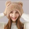 Gorro Tricotado Fofo com Pompom de Pele de Inverno para Menina Estilo Coreano Retrô Agulha Grossa Torcido Costura de Borda de Pelúcia Proteção de Orelha Chapéu de Lã