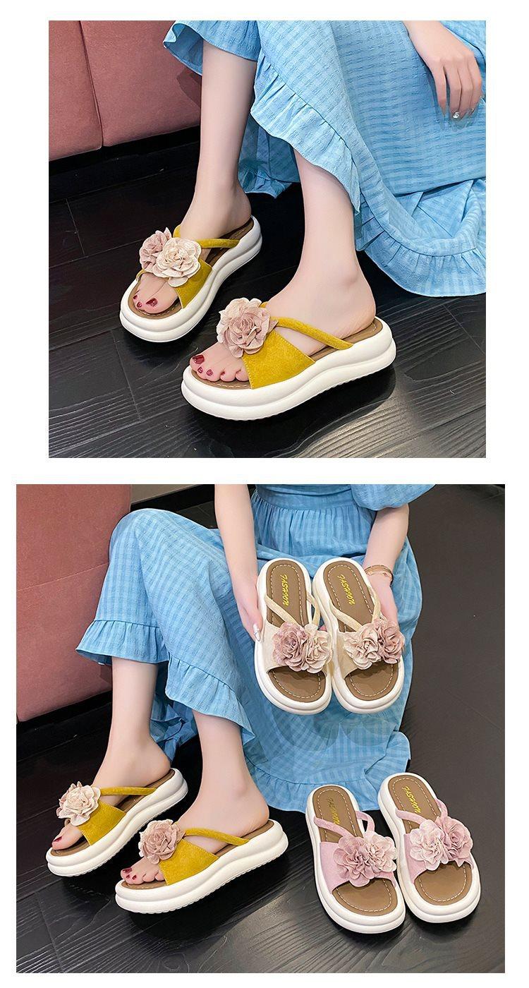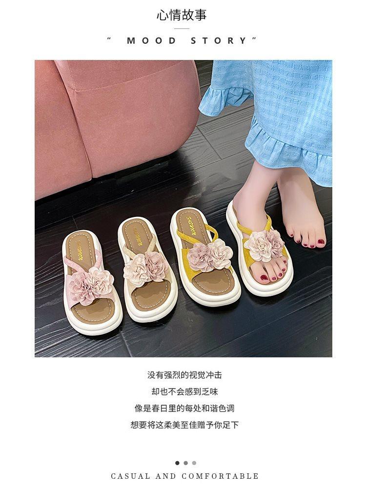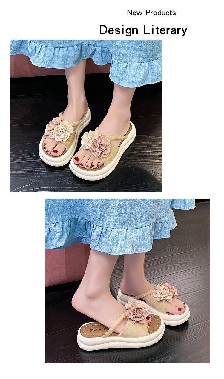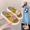 Sandálias e chinelos de flor de sola grossa para mulheres 2025 verão novo estilo para usar fora com saia sandálias estilo fada antiderrapantes sandálias de praia
