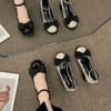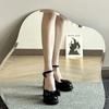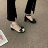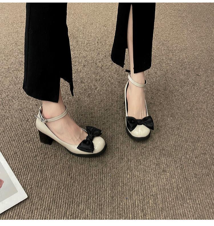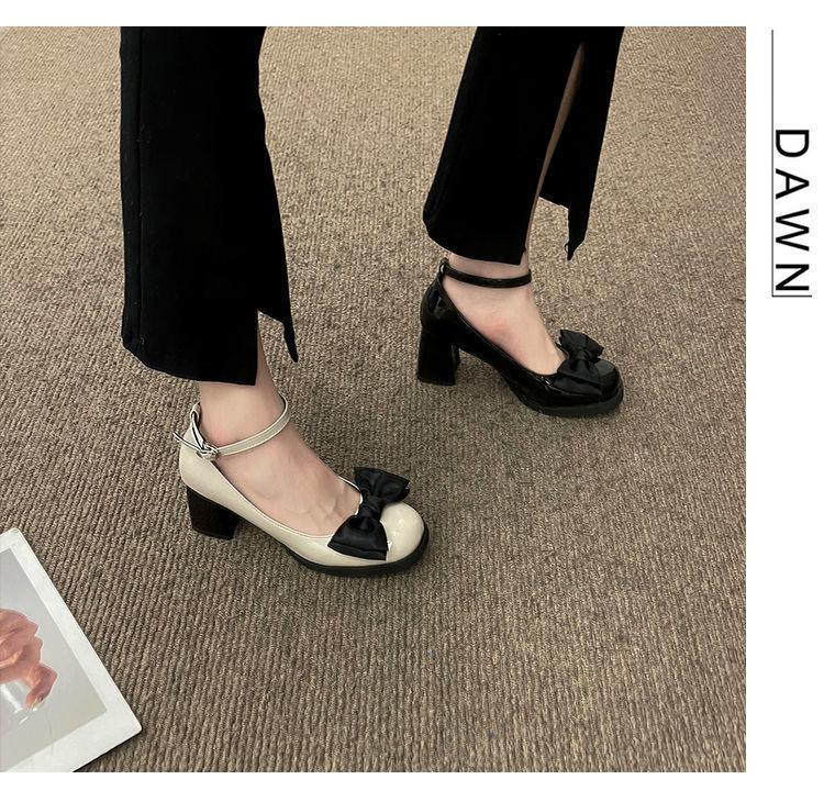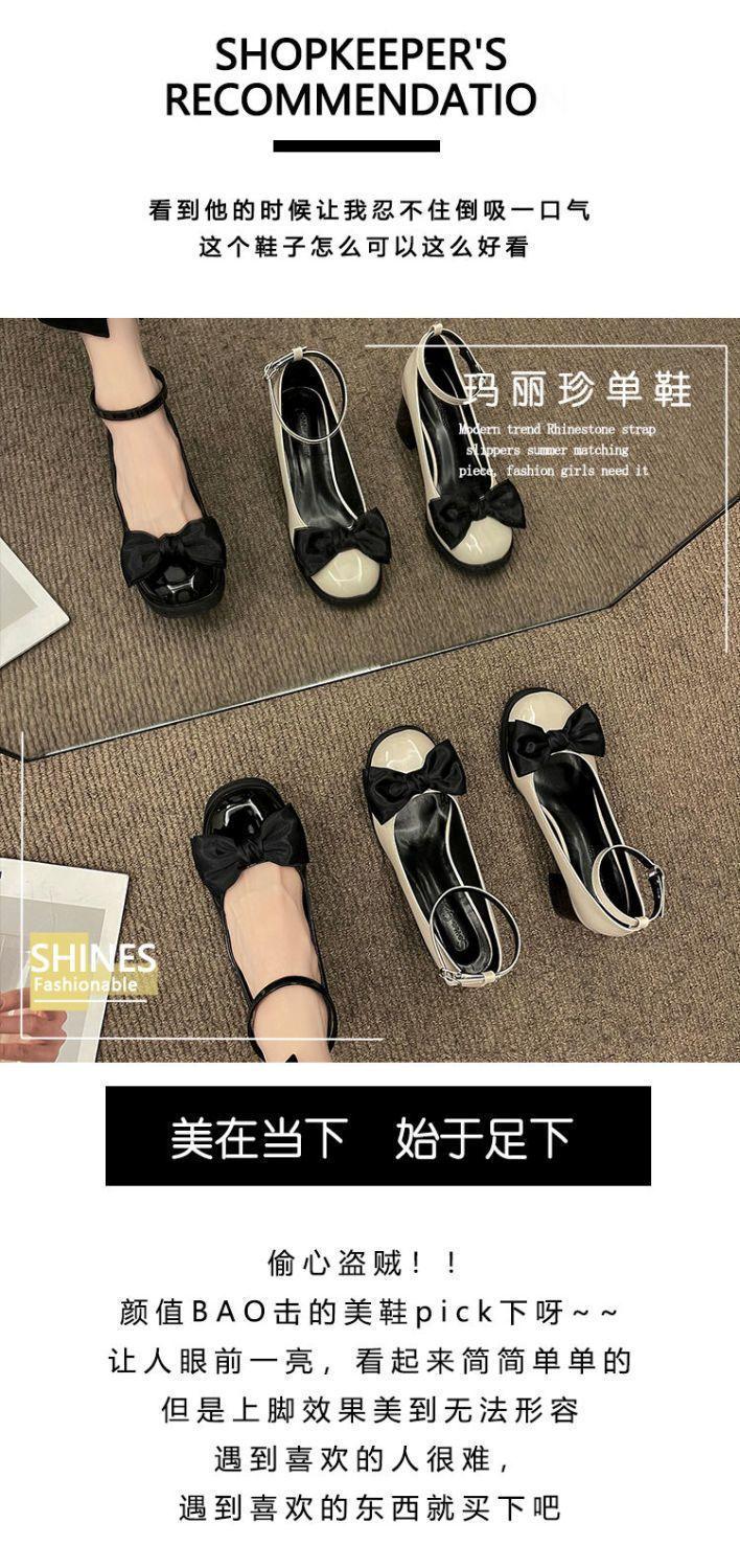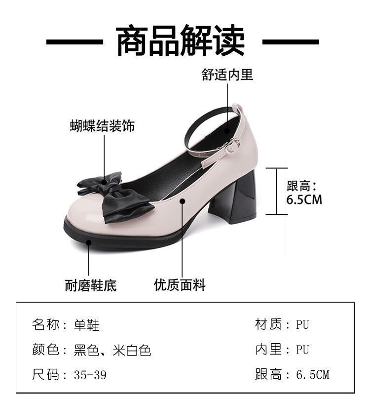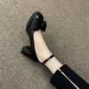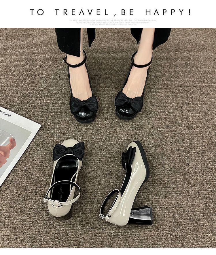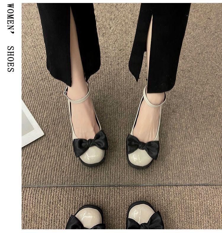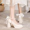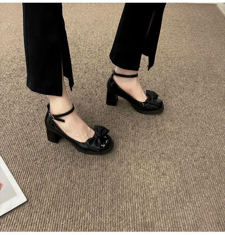 Sapatos Mary Jane Salto Grosso Feminino 2025 Primavera Novo Elegante Estilo Fada Laço Salto Alto Verniz Sapatos Franceses