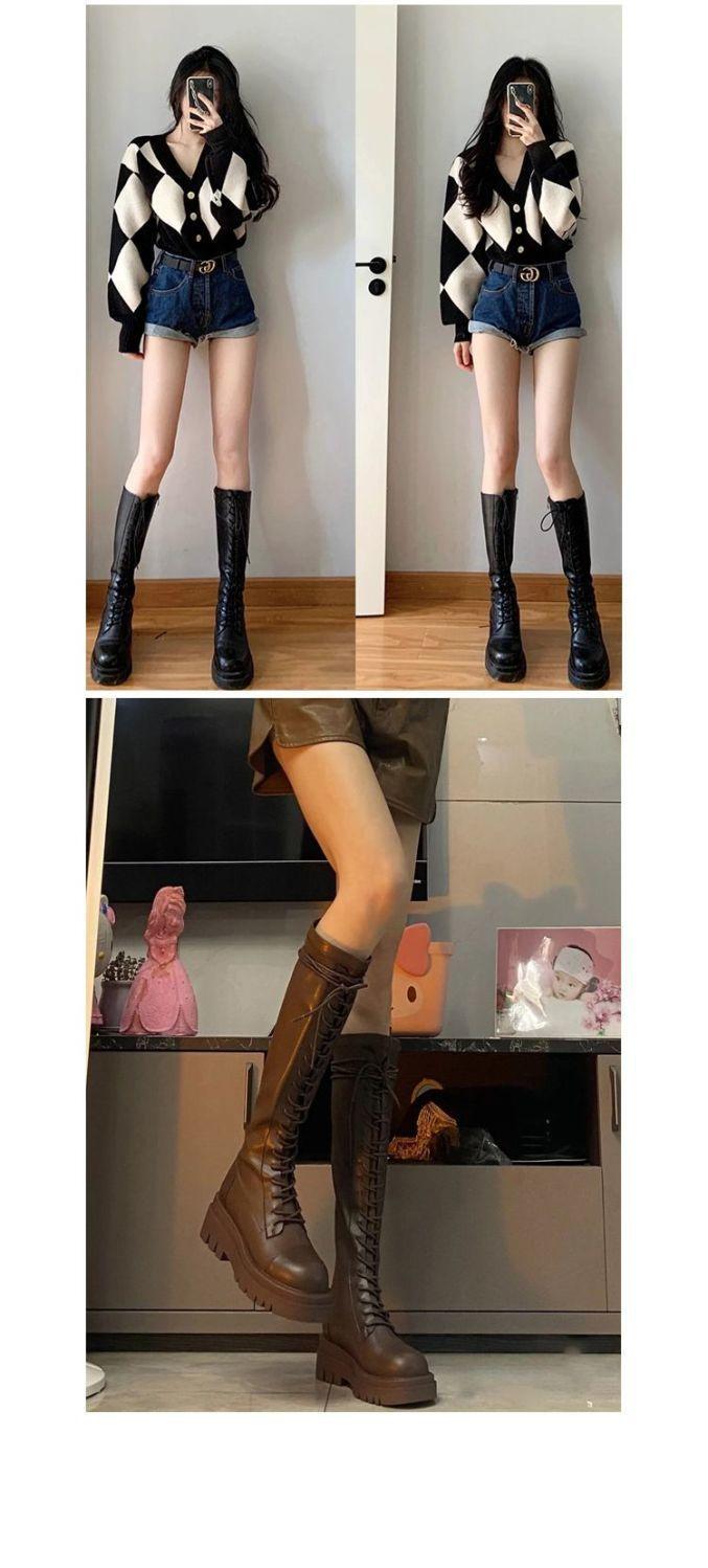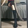 Botas de Cavaleiro Estilo Britânico para Mulheres no Outono de 2022 Novas de Solado Grosso Pequenas Elásticas Look Emagrecedor Cano Alto Sem Joelho