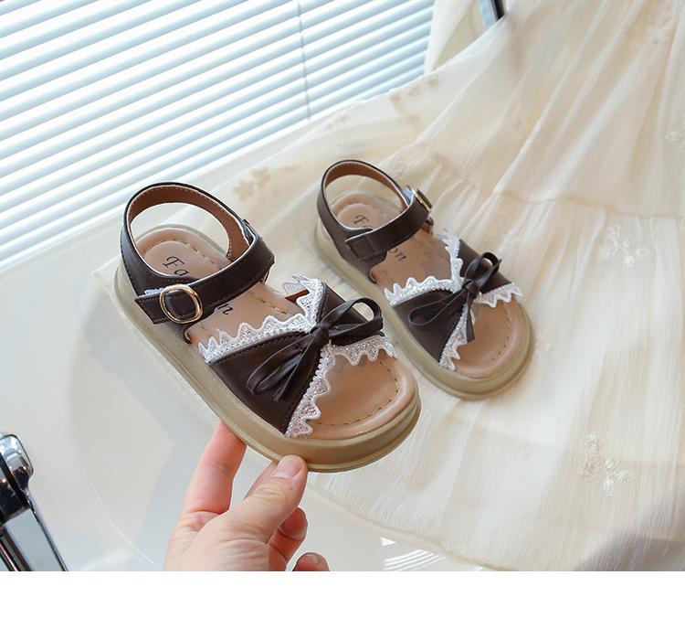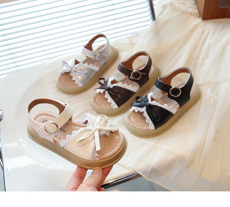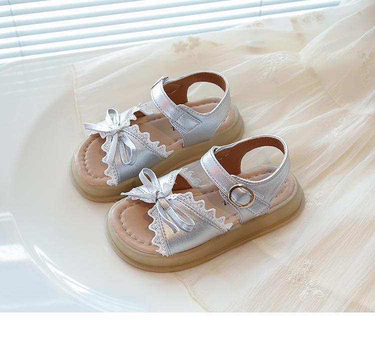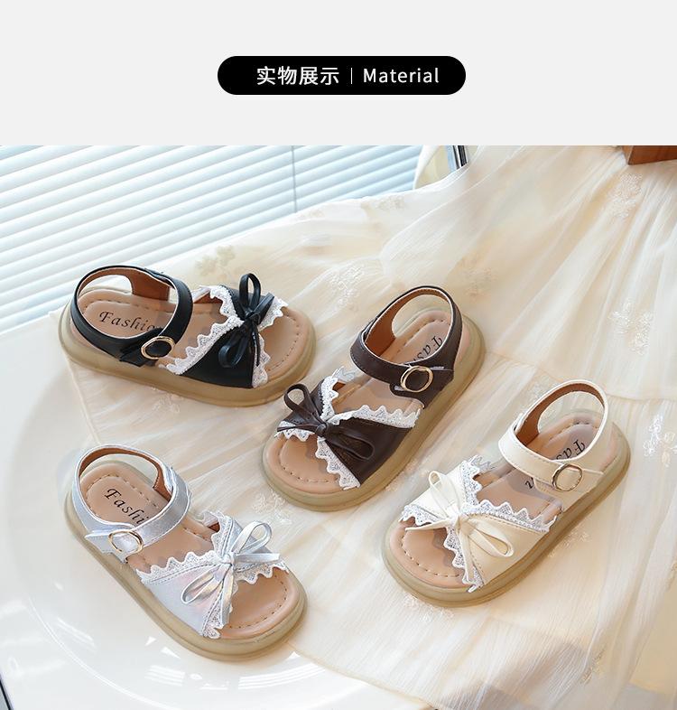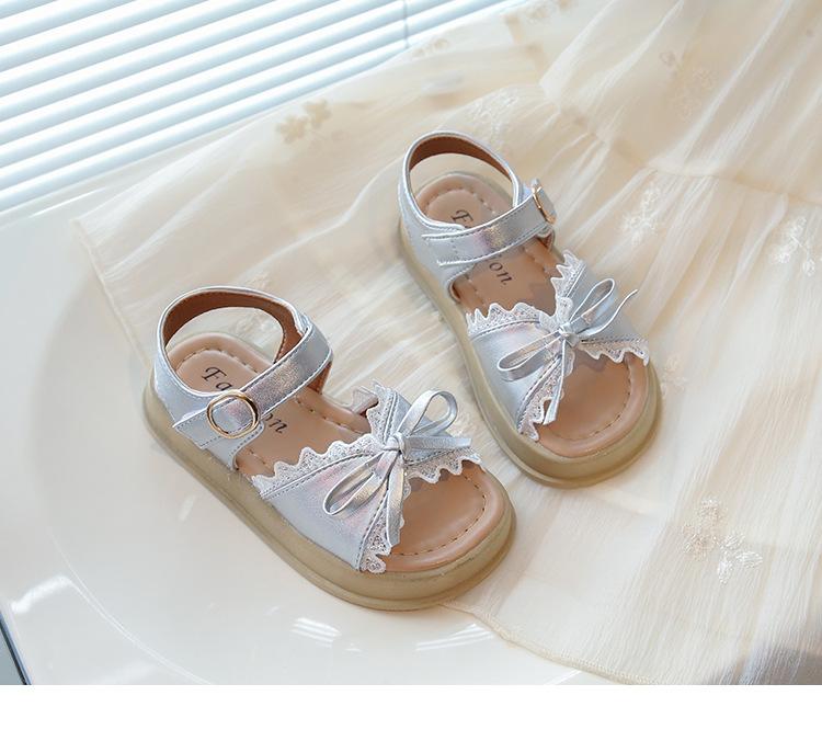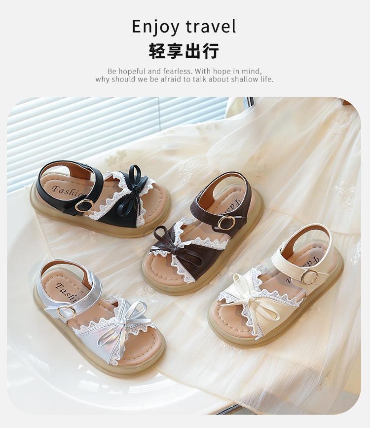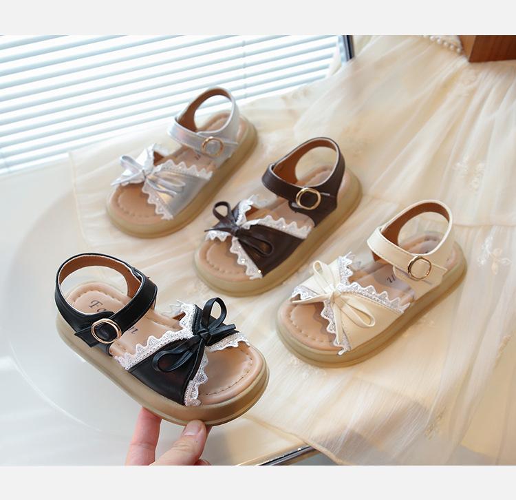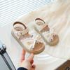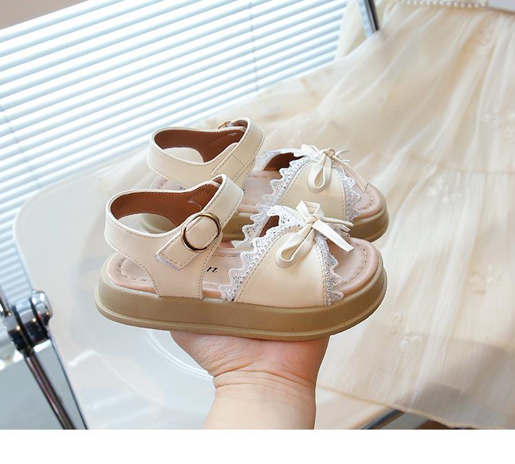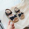 Sandálias de Menina 2025 Verão Novo Sapatos de Princesa Estilosos com Laço Infantil Menininha Bebê Sola Macia Sapatos de Praia