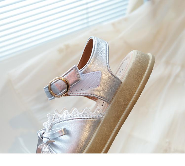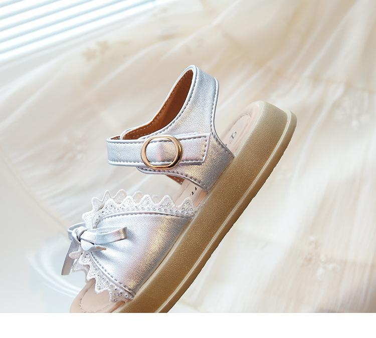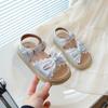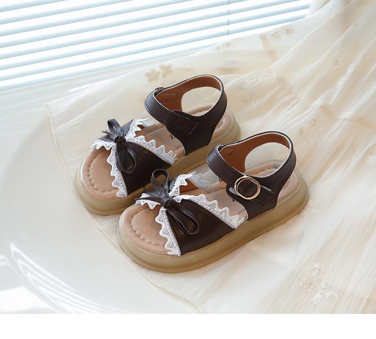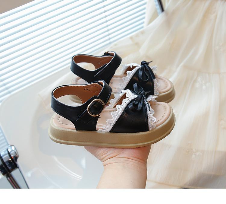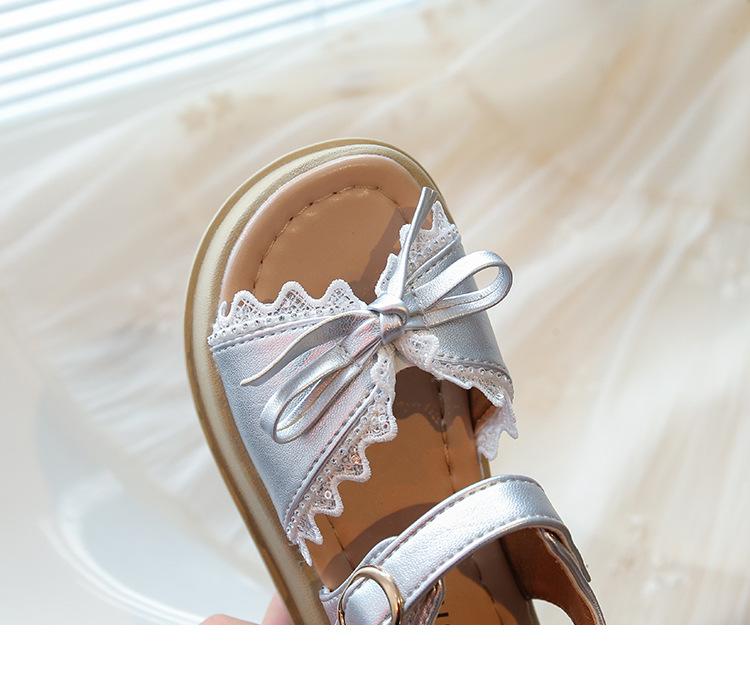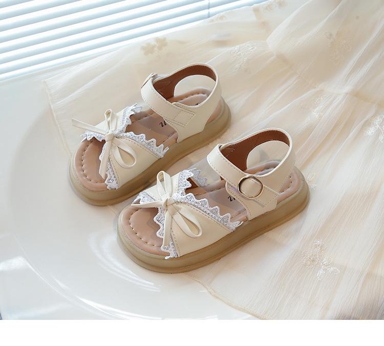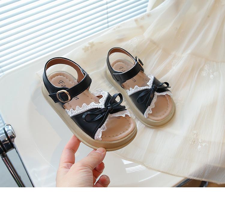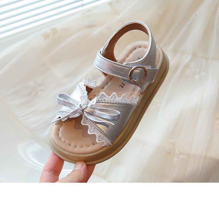 Sandálias de Menina 2025 Verão Novo Sapatos de Princesa Estilosos com Laço Infantil Menininha Bebê Sola Macia Sapatos de Praia