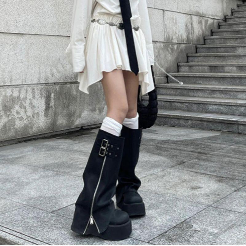 Botas Calça de Sola Grossa Novas 2025, Botas Cavaleiro Ocidental, Botas Longas Populares para Mulheres, Botas Altas Slim até o Joelho de Outono e Inverno
