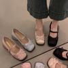 Sapatos Mary Jane de Salto Alto com Laço de Cetim Estilo Fada Francês, Bico Quadrado, Fivela de Uma Tira, Novo Estilo Primavera/Verão 2025