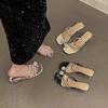 Sandálias de Bico com Strass para Mulheres 2025 Verão Nova Moda Estilo Coreano Mary Jane Flats Sapatilhas Sandálias Retrô para Mulheres