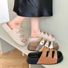 Chinelo de sola grossa feminino 2025 mais recente bico redondo verão exterior sola plana confortável moda versátil sandálias de sola macia