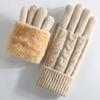 Novas Luvas Quentes e à Prova de Frio Estilo Coreano com Veludo e Espessas Inverno Retrô Tricotadas com Costura Jacquard Luvas Touch Screen