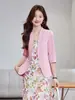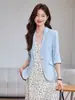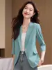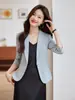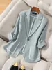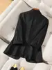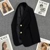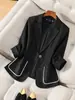 2025 Novo Casaco Preto de Manga Sete-oitavos com Colarinho de Terninho Pequeno Feminino Manga Média Profissional Casual Primavera Verão Outono Top Elegante