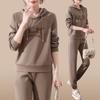 Conjunto Esportivo Feminino Primavera e Outono 2025 Novo Mãe Solto Moda Elegante Jaqueta Cardigan Manga Longa Conjunto Três Peças