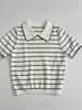 Camiseta casual feminina de malha fina estilo europeu e americano, manga curta, gola polo de verão com renda e emenda