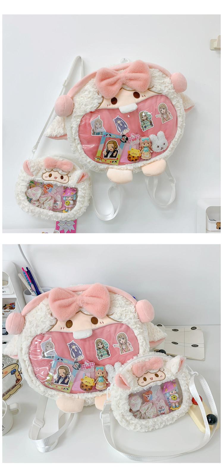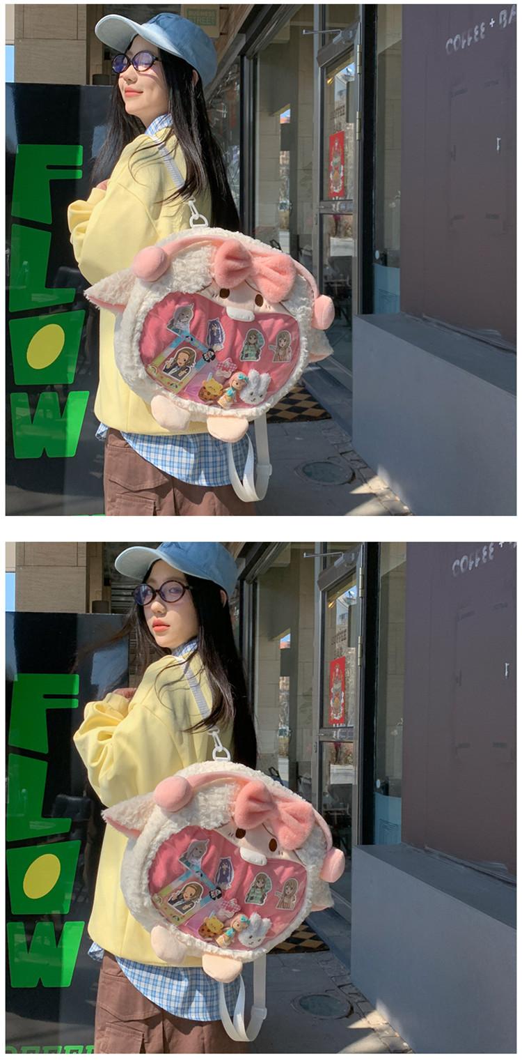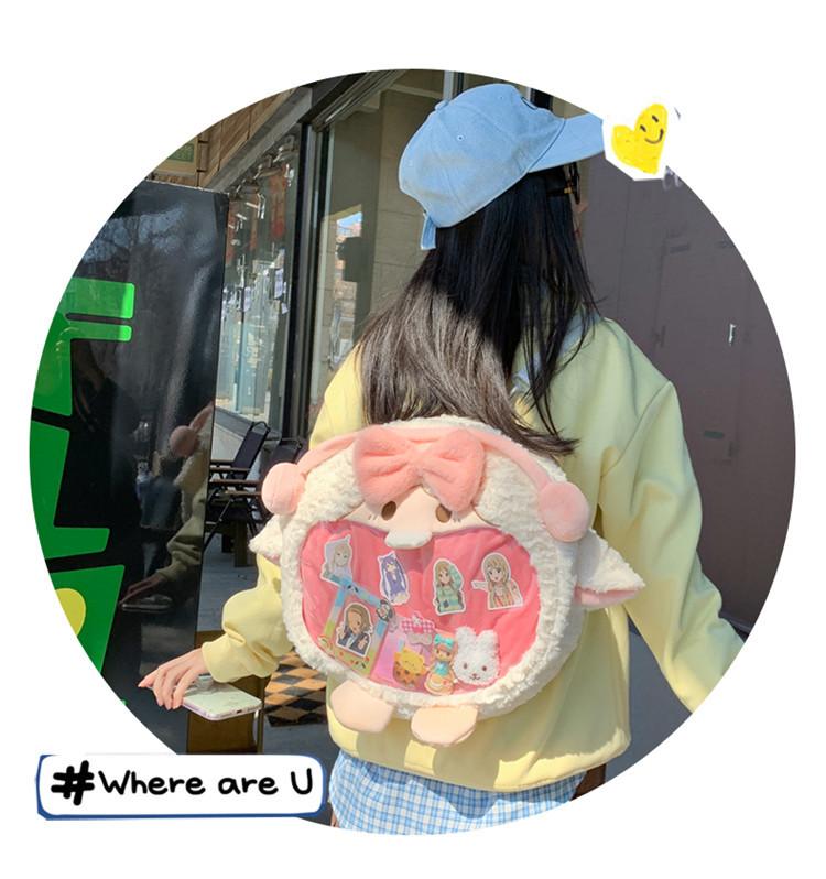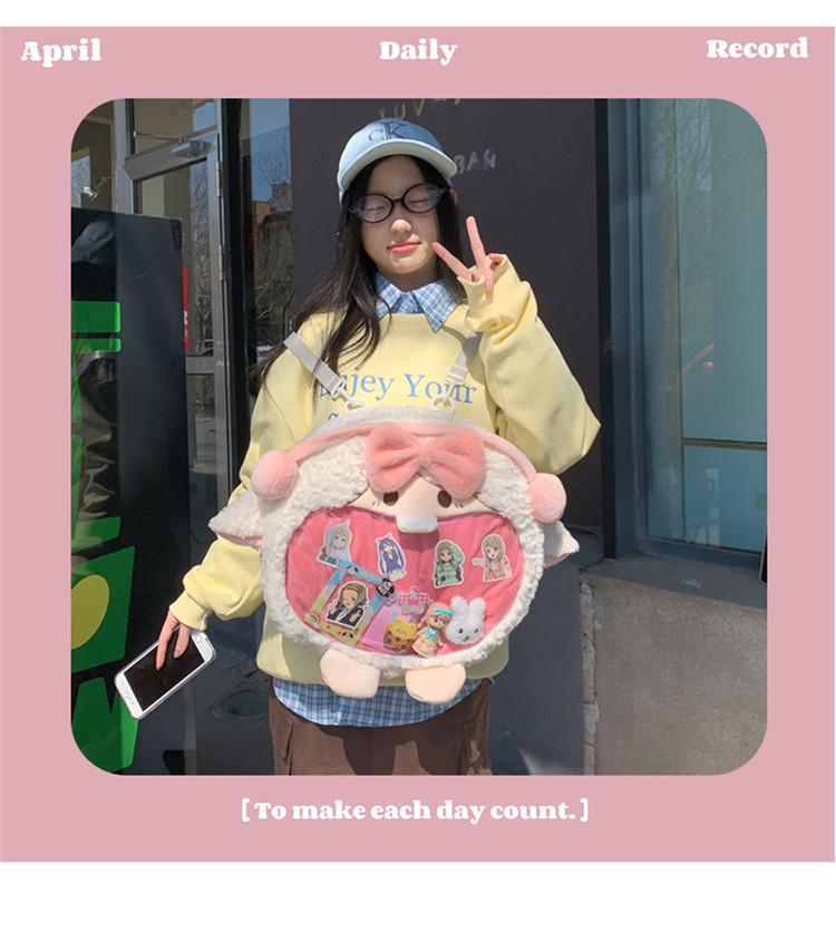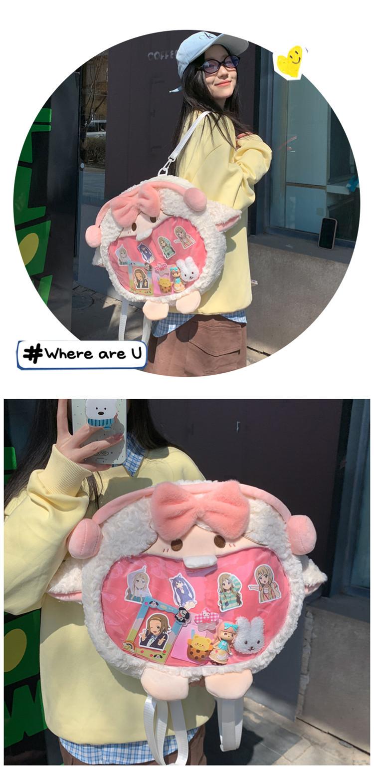 Bolsa de Pão de Ovelha Fofa com Laço Mochila Transversal de Pelúcia Alto Valor de Cor Menina Grande Comida Bolsa de Desenho Animado