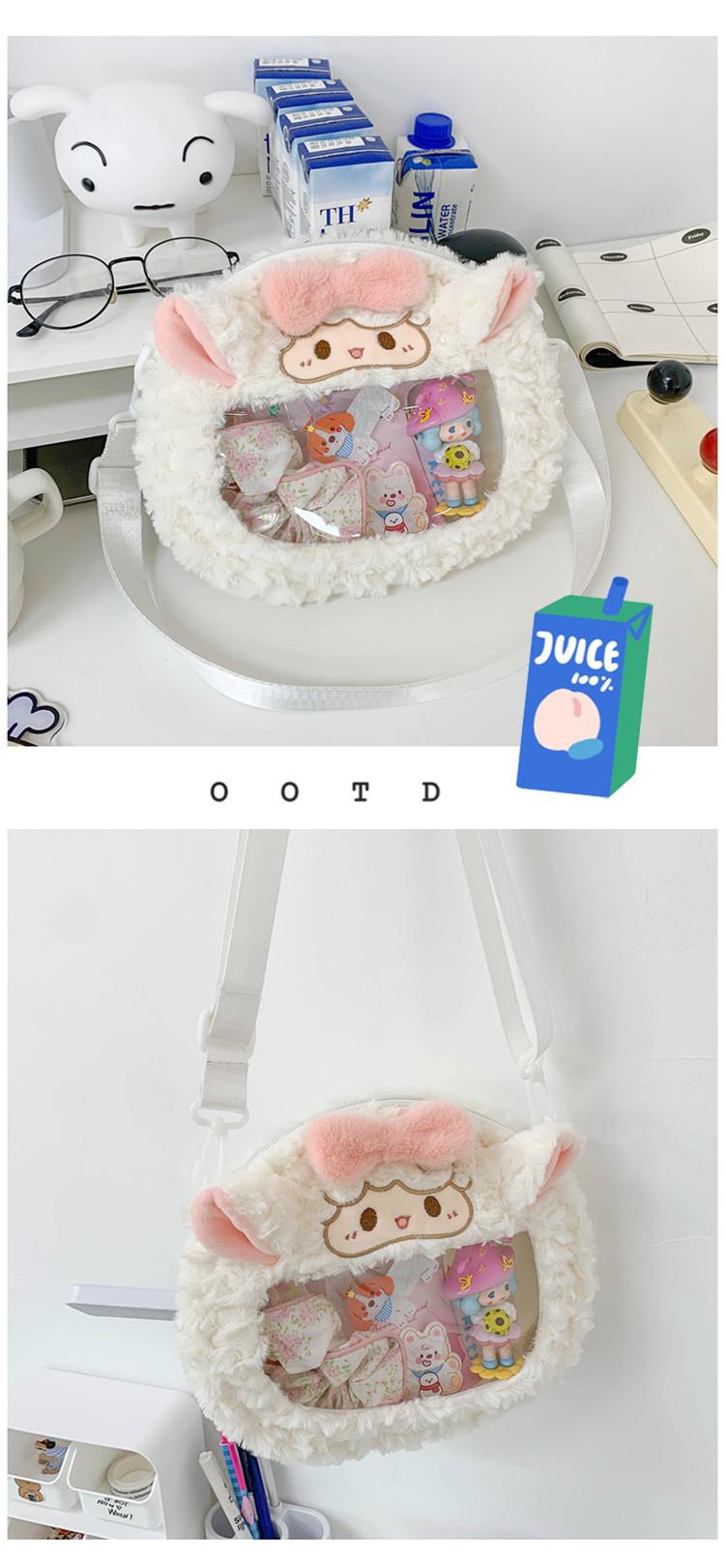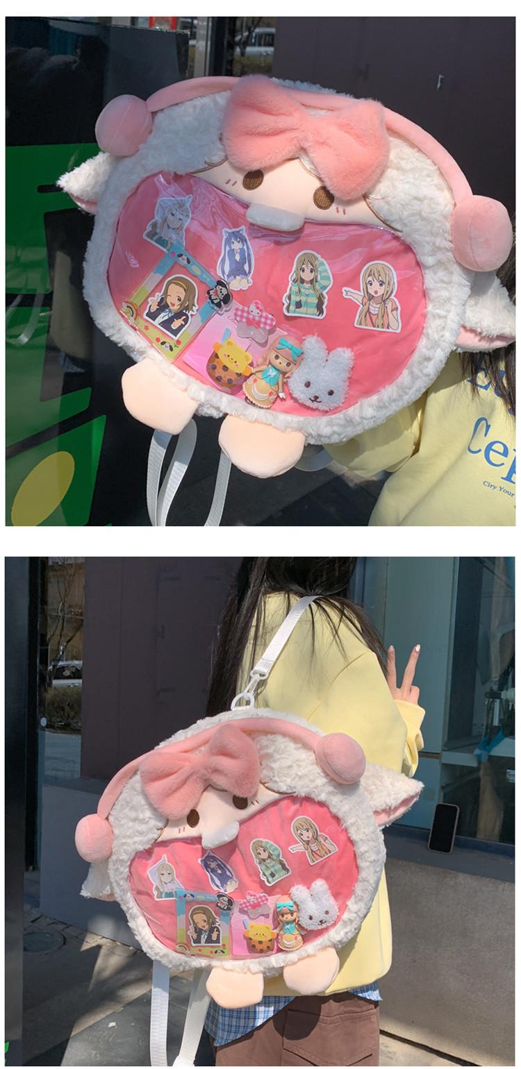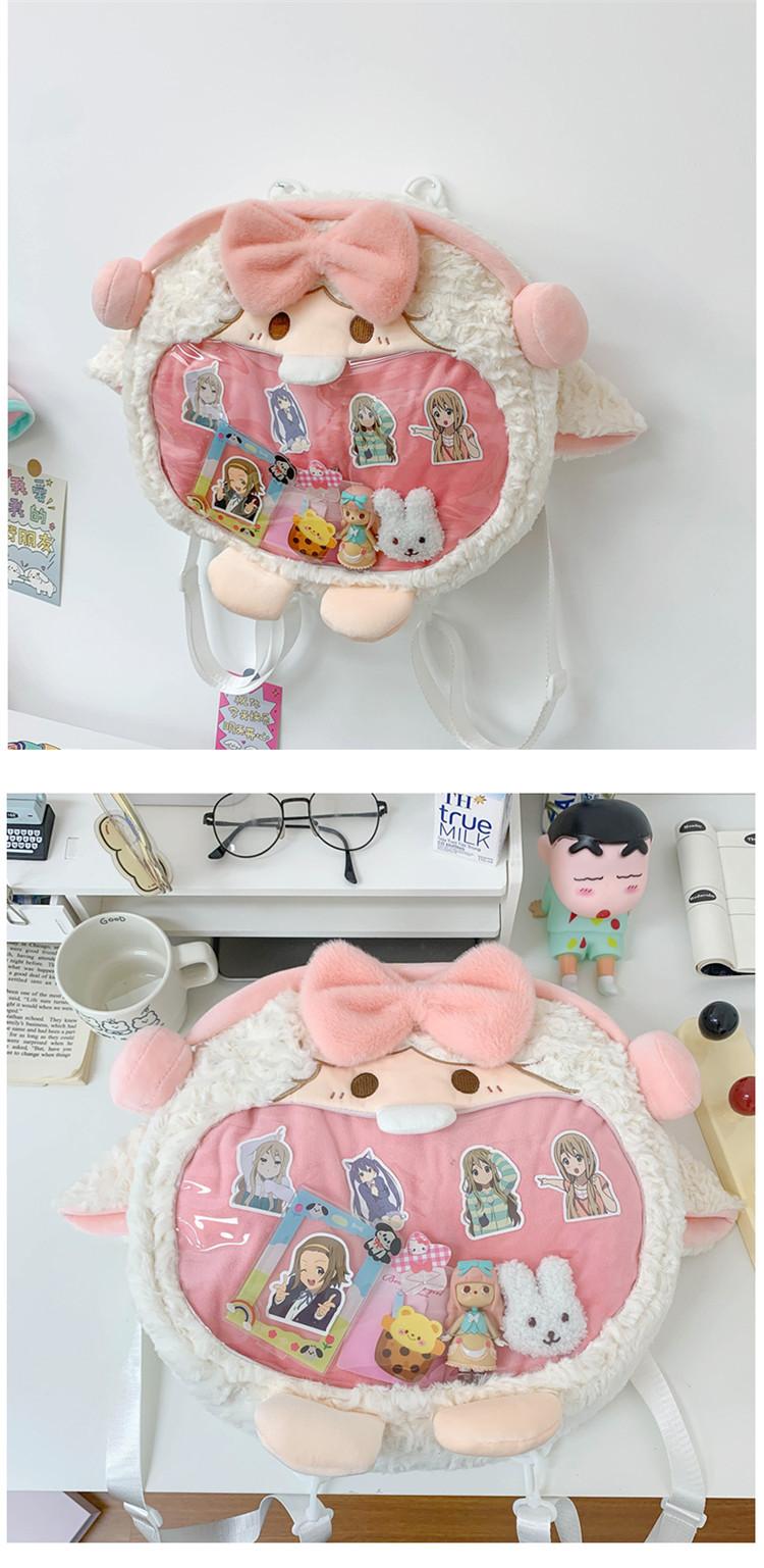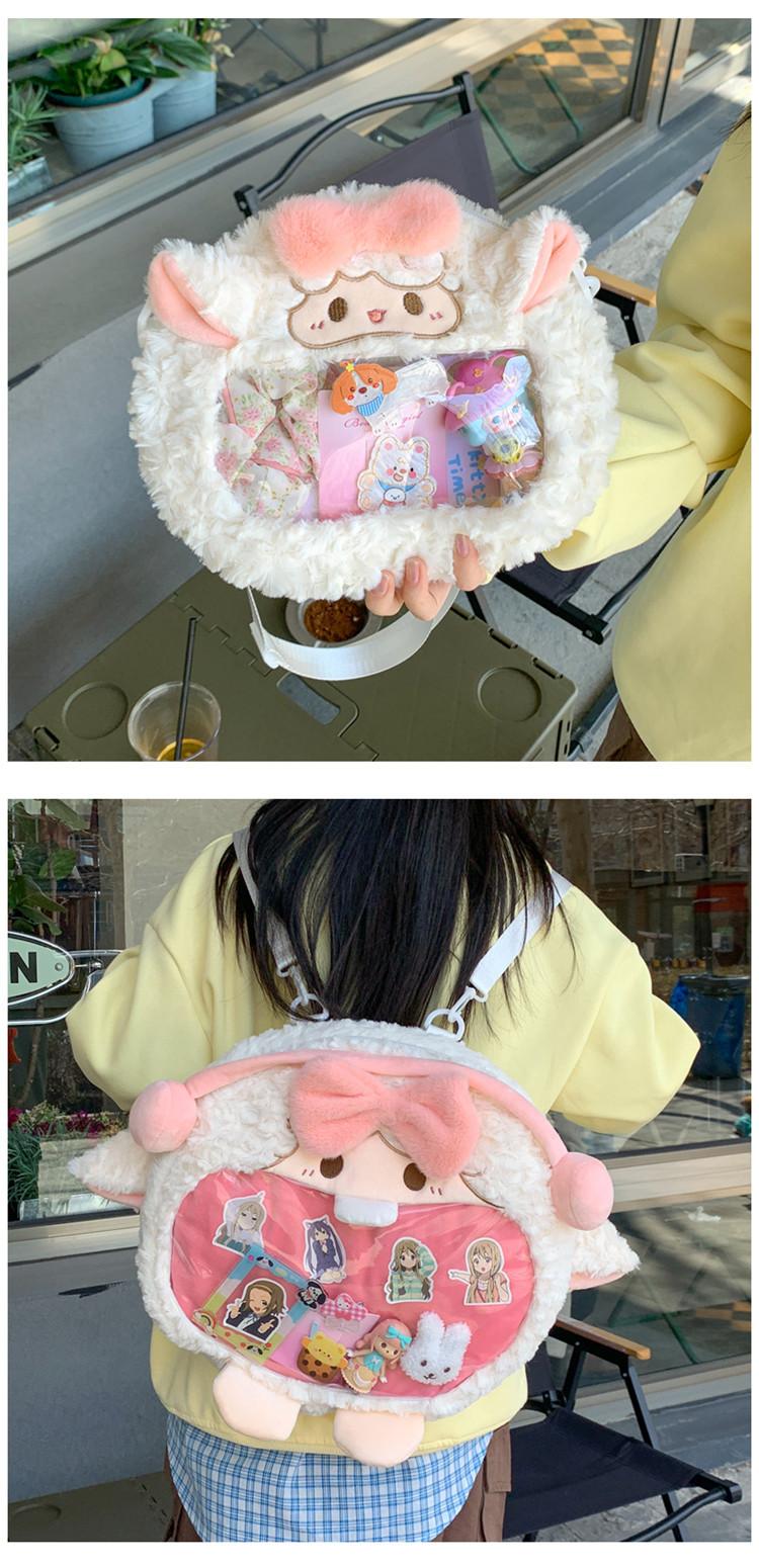 Bolsa de Pão de Ovelha Fofa com Laço Mochila Transversal de Pelúcia Alto Valor de Cor Menina Grande Comida Bolsa de Desenho Animado