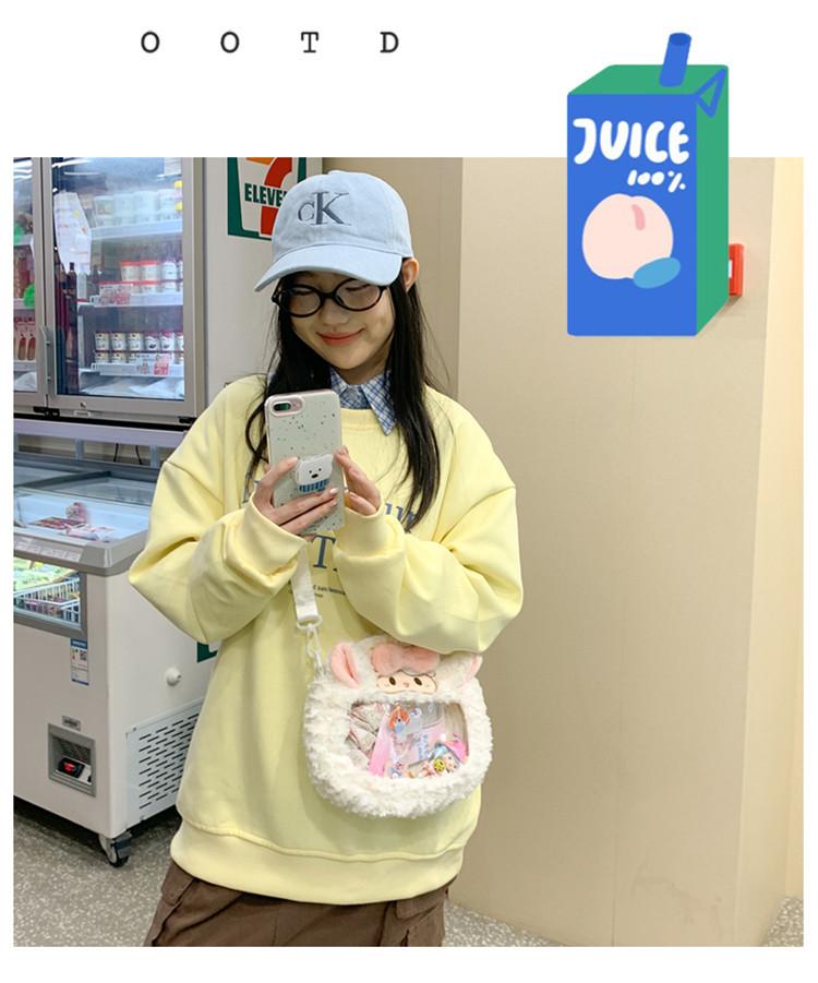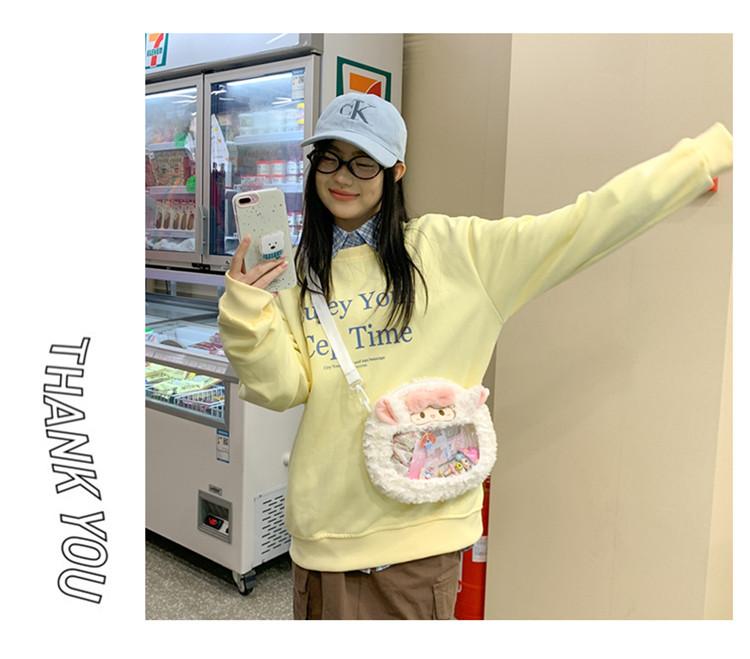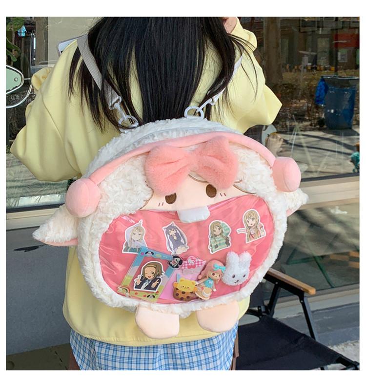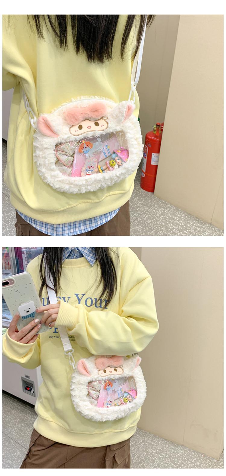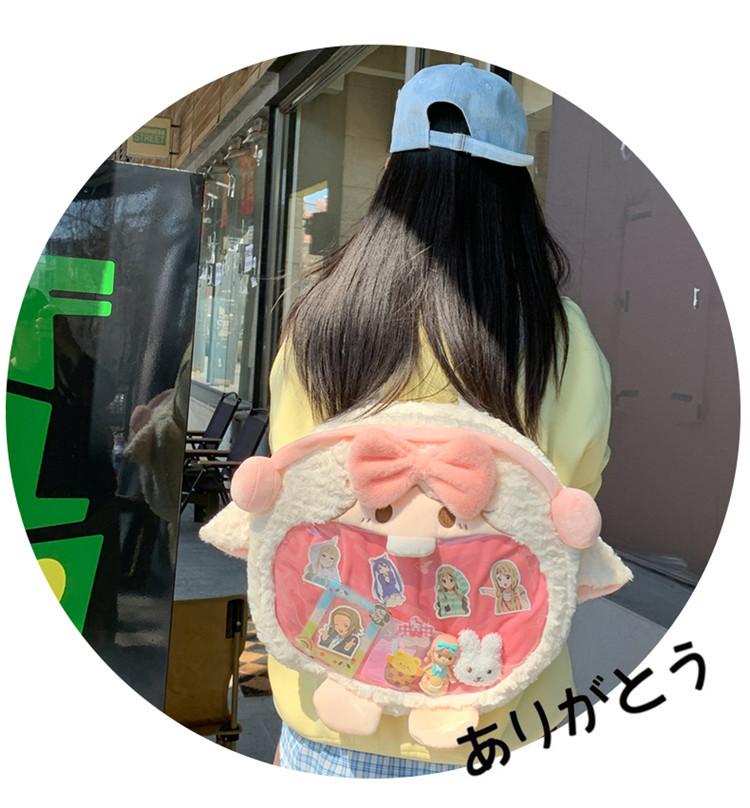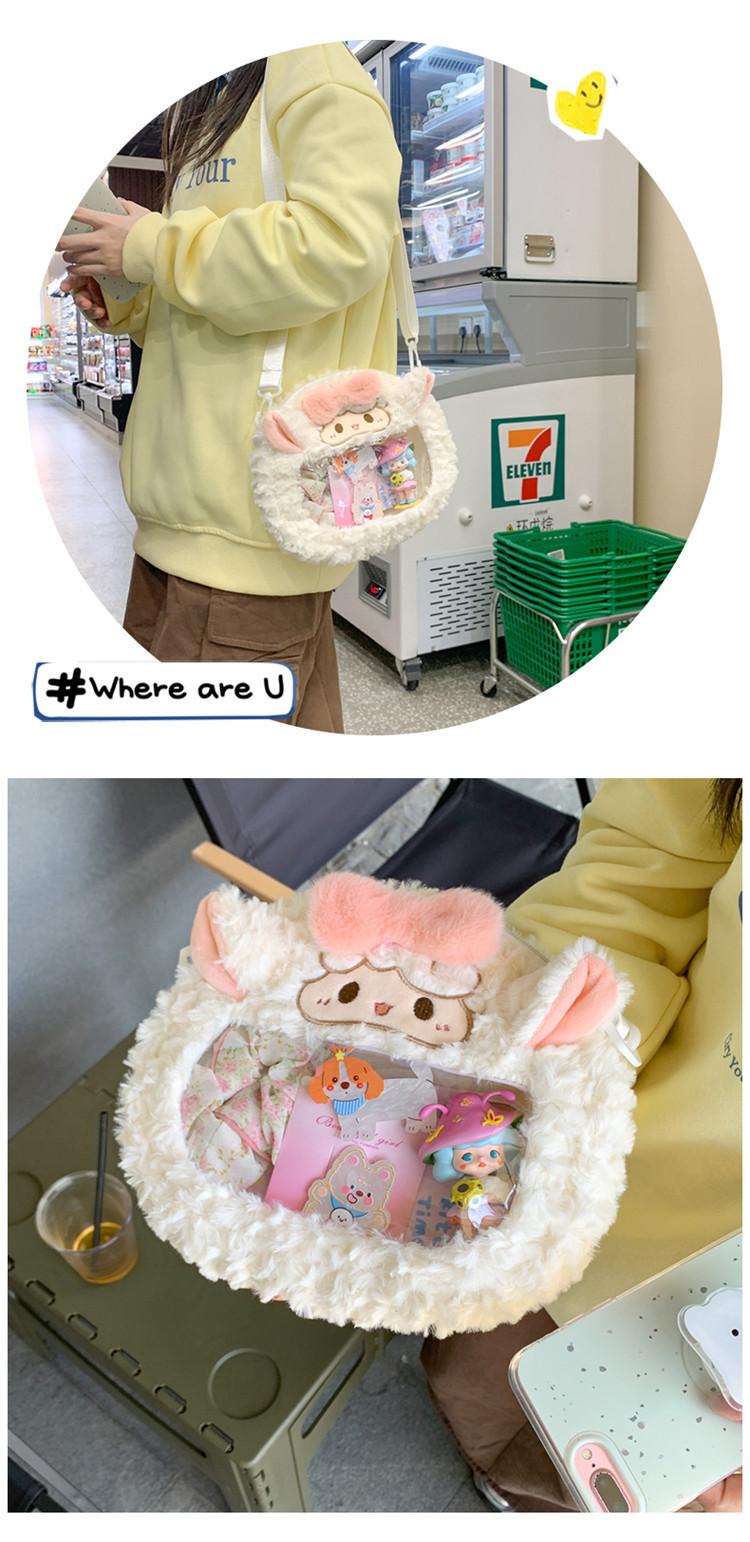 Bolsa de Pão de Ovelha Fofa com Laço Mochila Transversal de Pelúcia Alto Valor de Cor Menina Grande Comida Bolsa de Desenho Animado