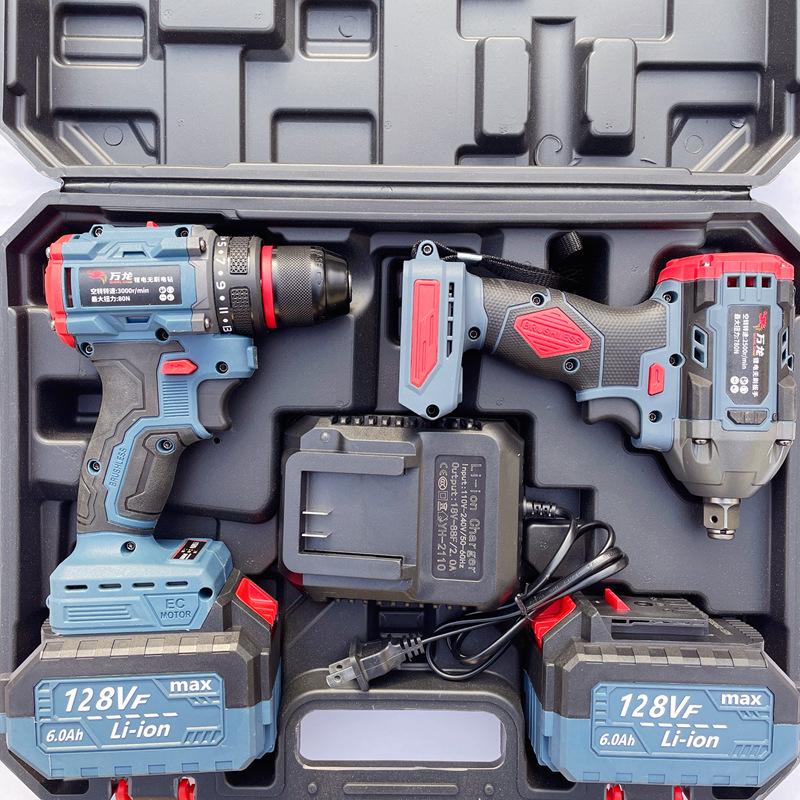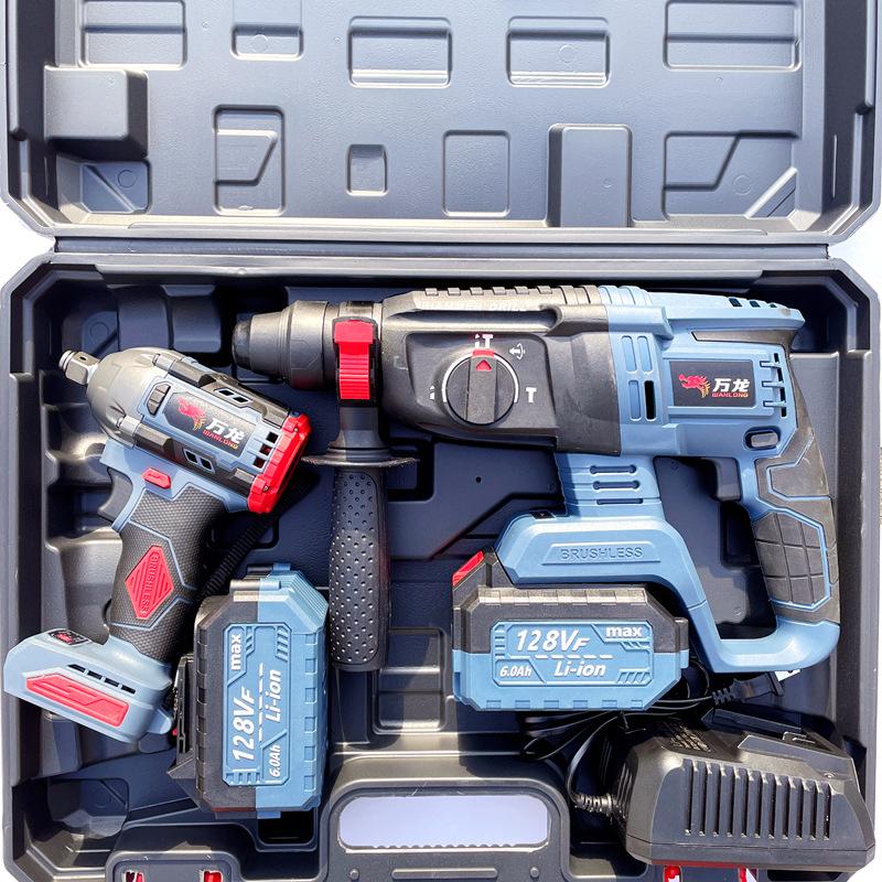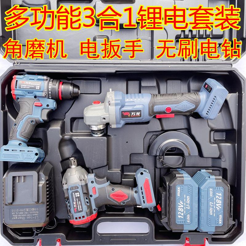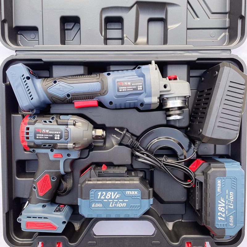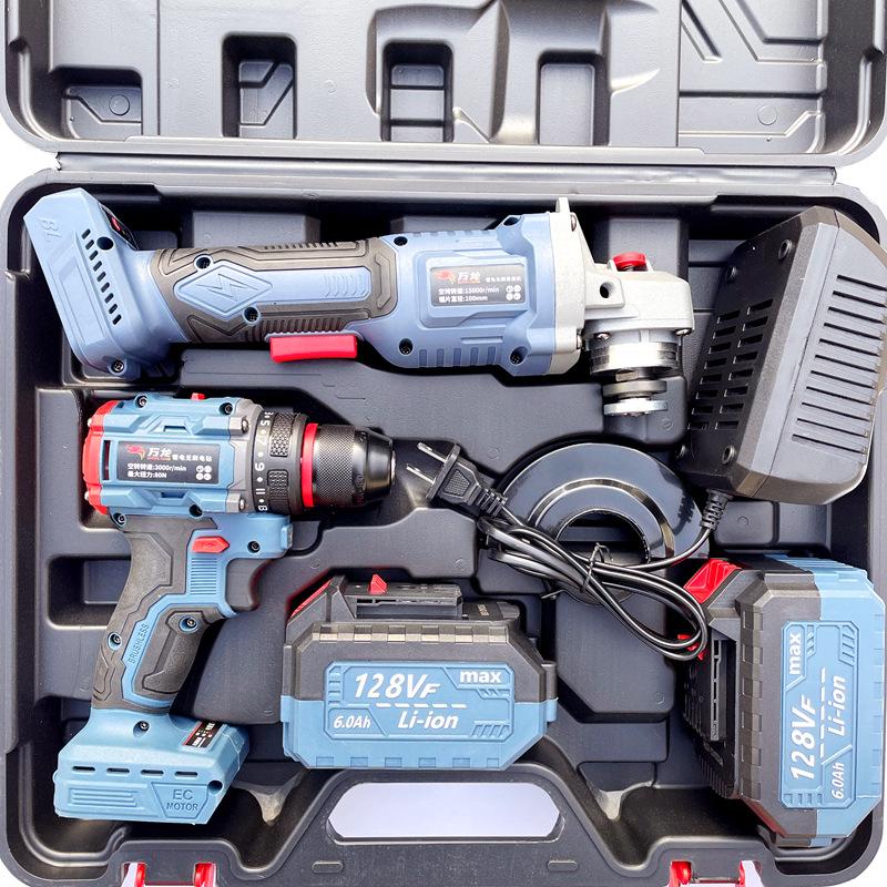 Martelete Elétrico Recarregável Sem Escovas a Bateria de Lítio Multifuncional Furadeira de Mão Esmerilhadeira Angular Furadeira Elétrica Chave de Boca Conjunto de Ferramentas de Quatro Peças