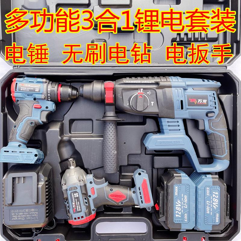 L four-piece set with 4 batteries and 2 chargers [electric hammer + angle grinder + electric wrench + small steel gun electric drill]