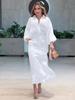Verão 2025 Exportação Novo Europeu e Americano Lapela Francesa Cintura Pequena Solto Casual Elegante Saia Longa Conjunto de Duas Peças