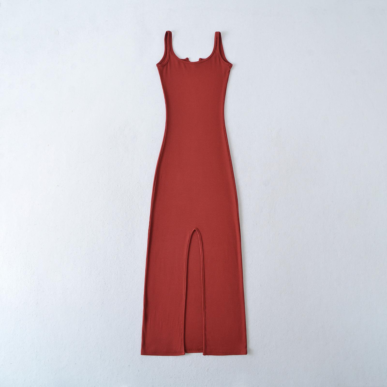Estilo Leve e Maduro Vestido de Suspensório Emagrecedor de Cintura de Garota Sexy Verão Novo Justo com Saia Longa Justa ao Quadril com Fenda nas Costas