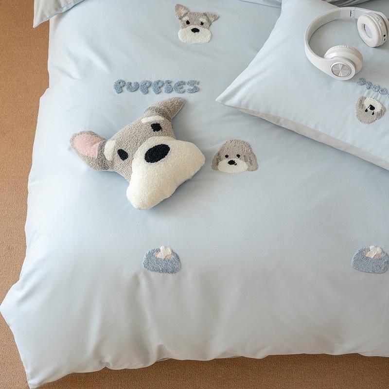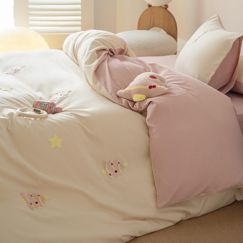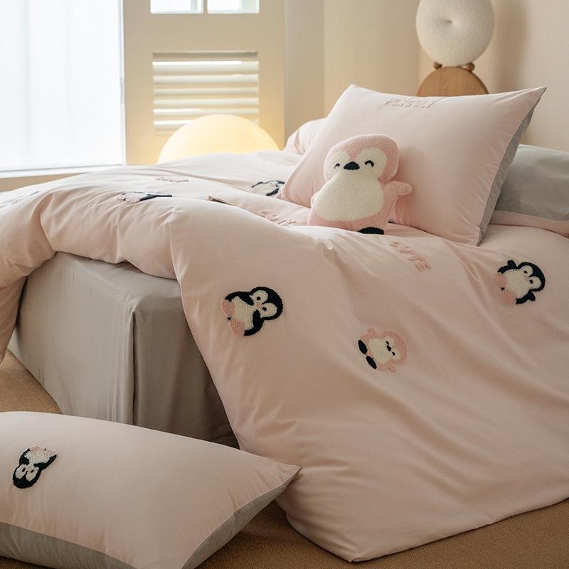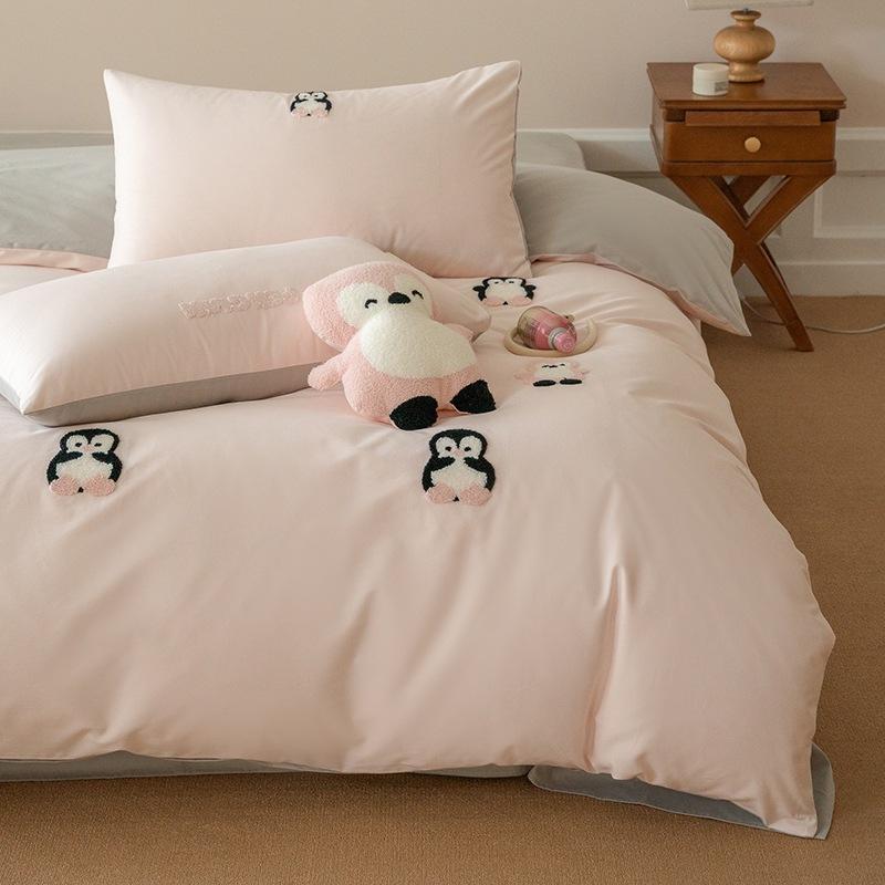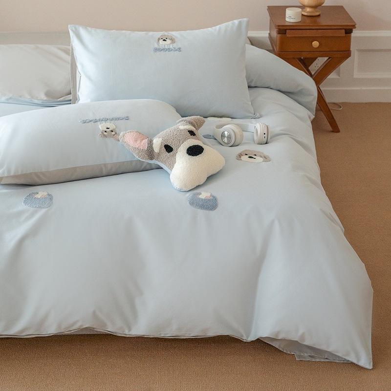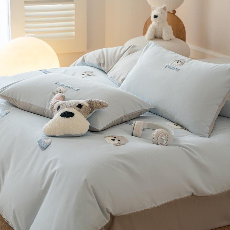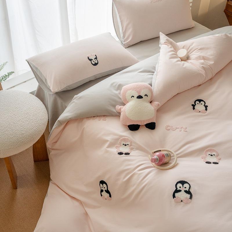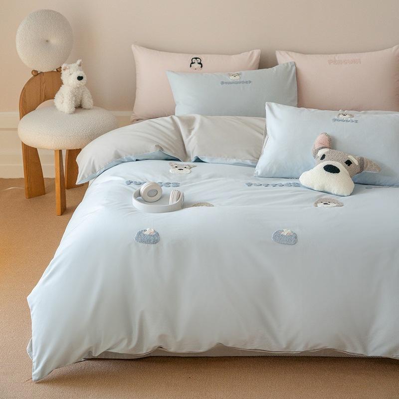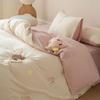 Primavera e Verão Algodão 100S Desenho Animado Infantil Toalha Fofa Conjunto de Quatro Peças Bordado Capa de Edredom Algodão Puro Roupa de Cama para Dormir Nua