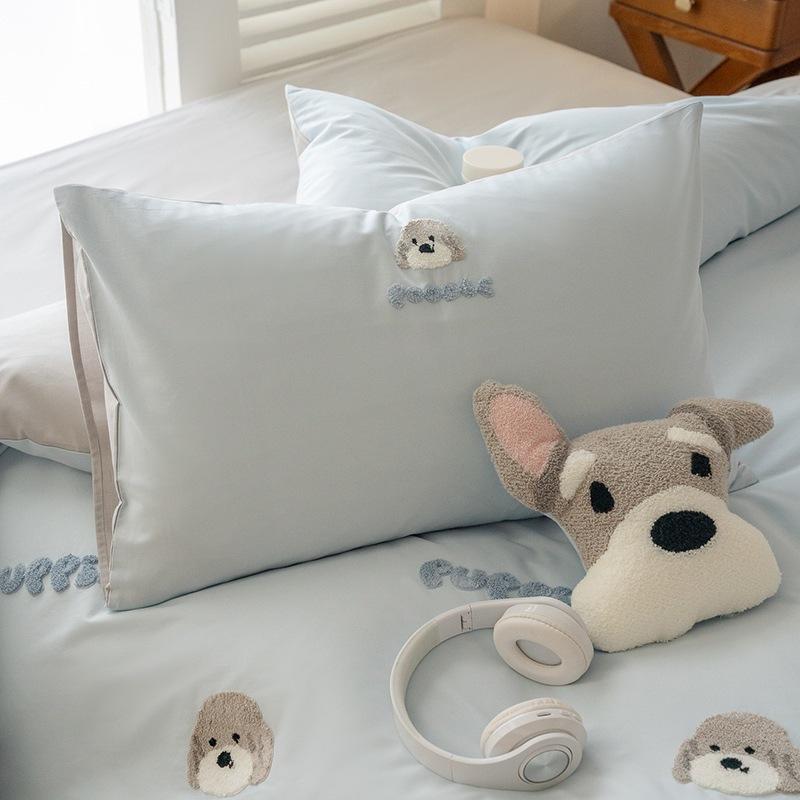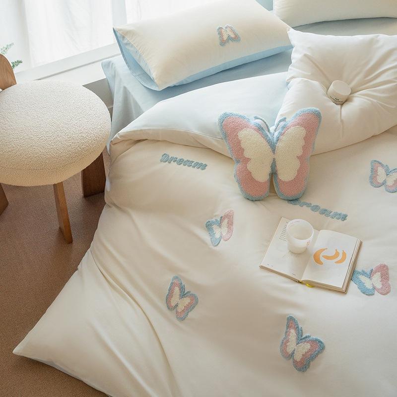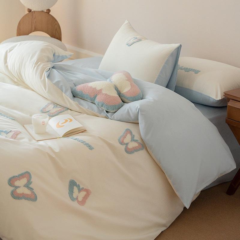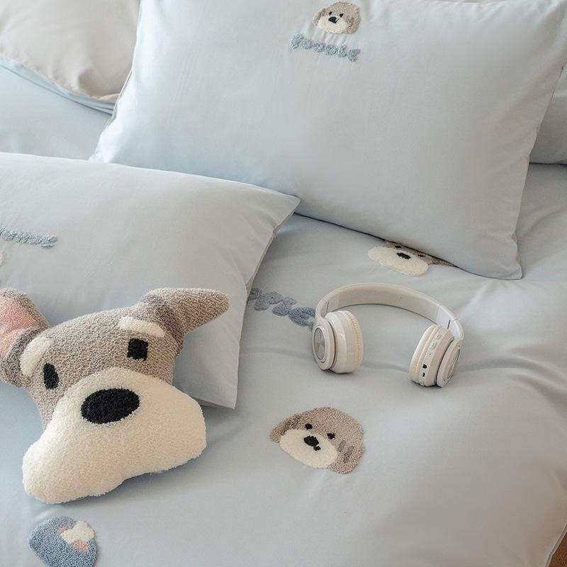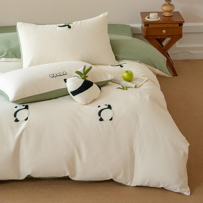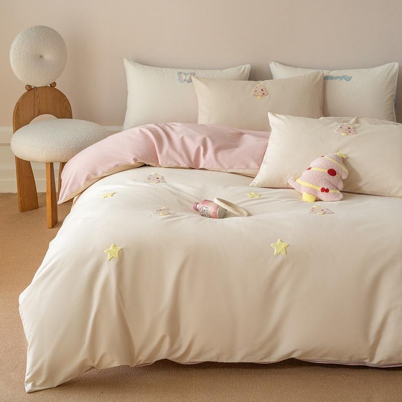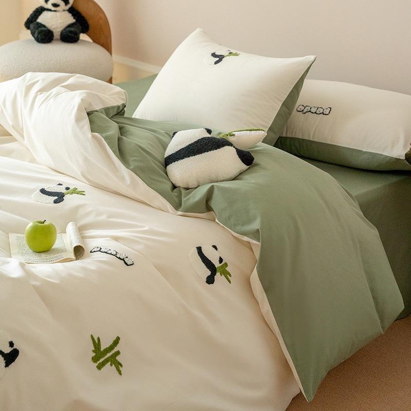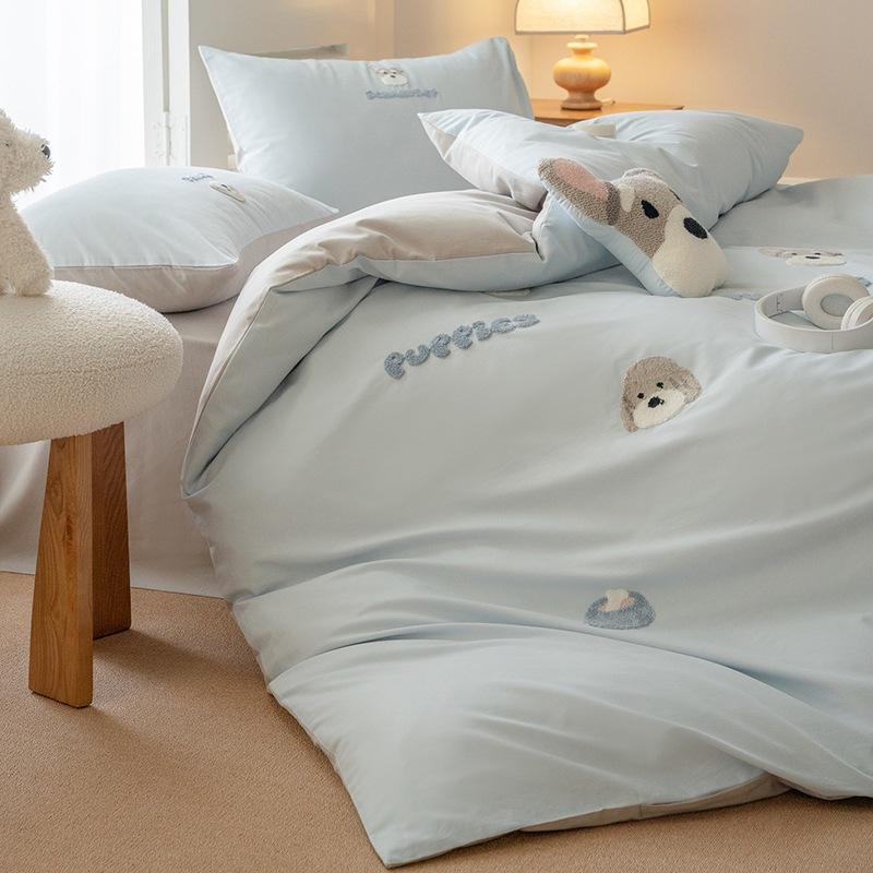 Primavera e Verão Algodão 100S Desenho Animado Infantil Toalha Fofa Conjunto de Quatro Peças Bordado Capa de Edredom Algodão Puro Roupa de Cama para Dormir Nua