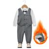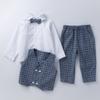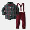 Padrão bebê e criança pequena terno de gala de cavalheiro roupas de menino estilo britânico com capuz suspensórios infantis de um ano conjunto de três peças